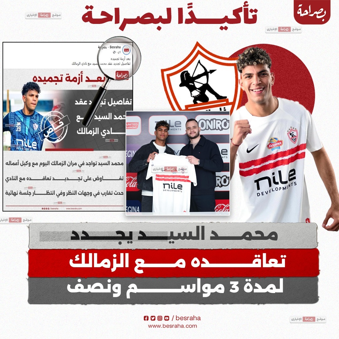 أعلن مجلس إدارة نادي الزمالك برئاسة الكابتن حسين لبيب، بالتنسيق مع جون إدوارد المدير الرياضي، عن تجديد عقد محمد السيد لاعب وسط الفريق لمدة ثلاثة مواسم ونصف خلال الفترة الحالية.