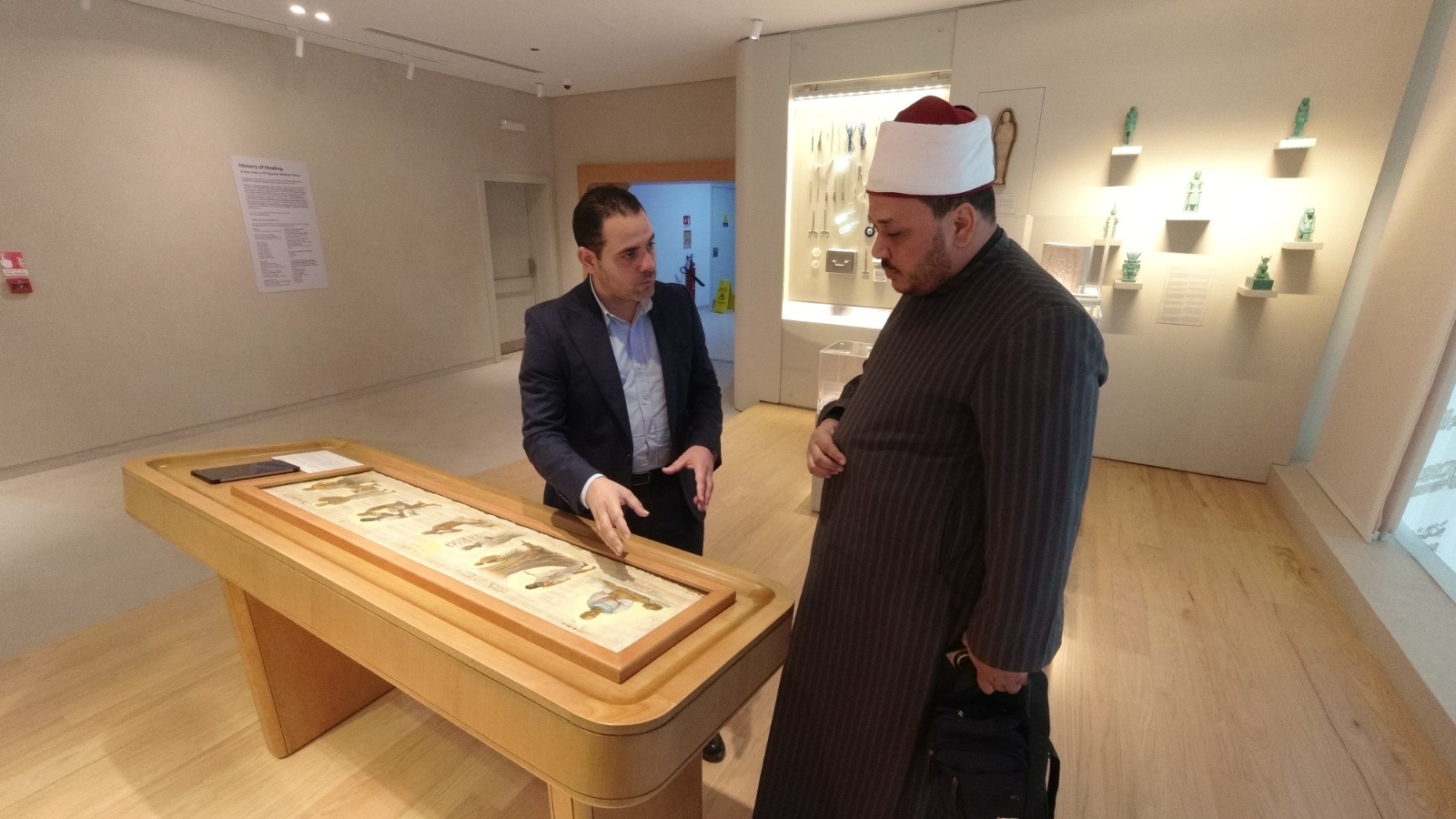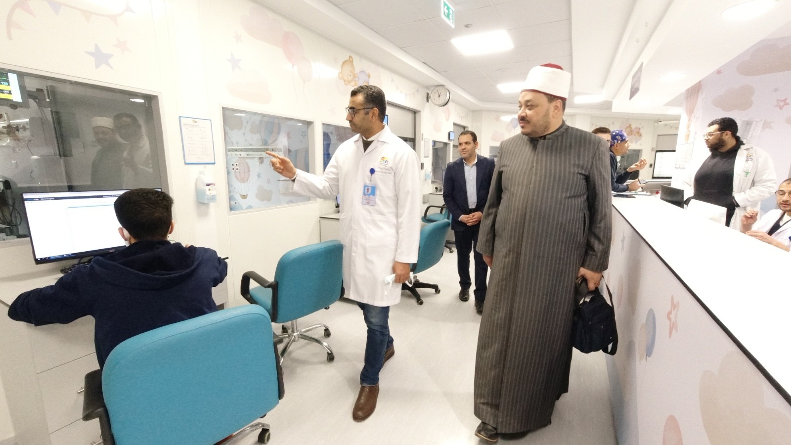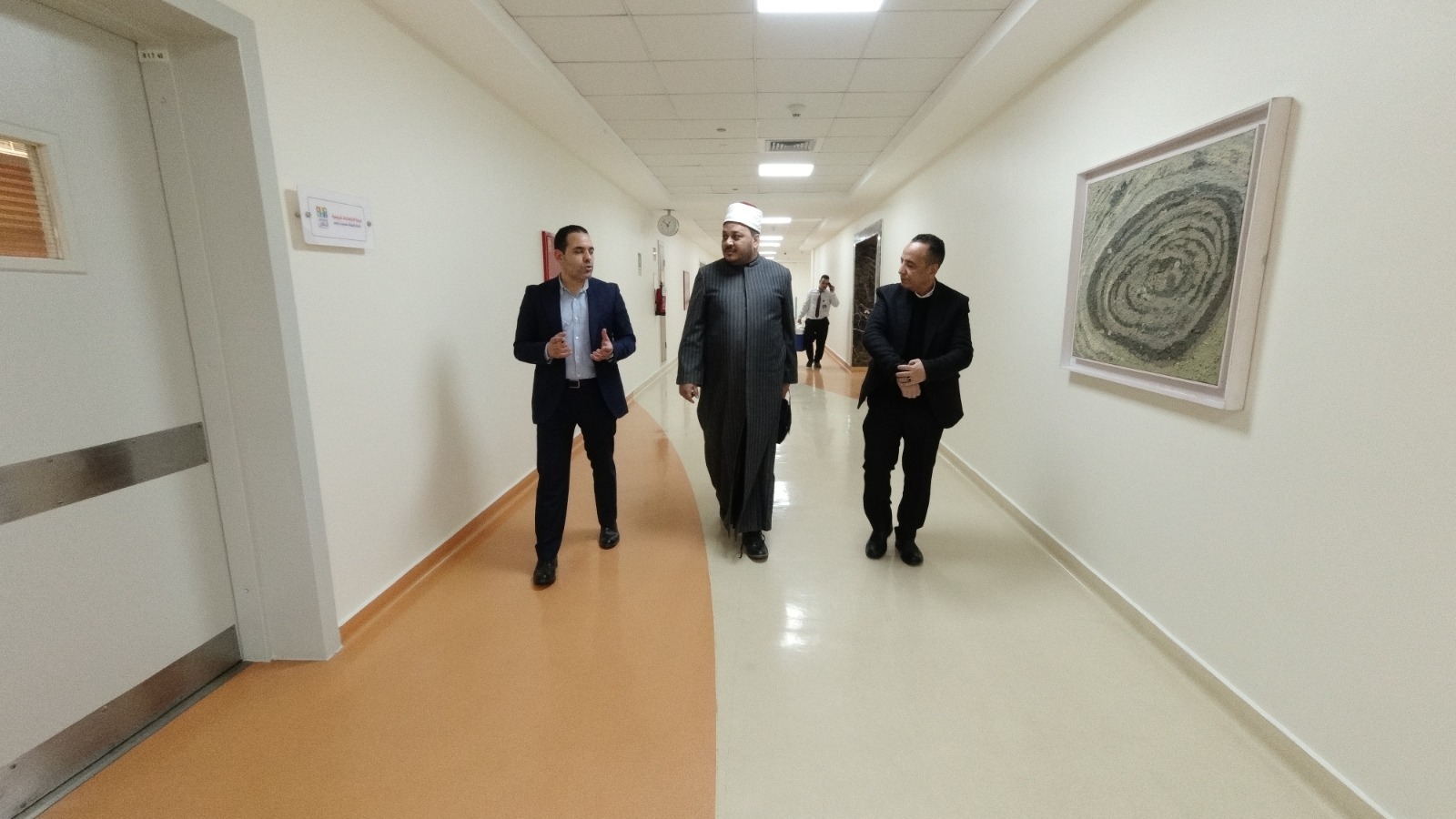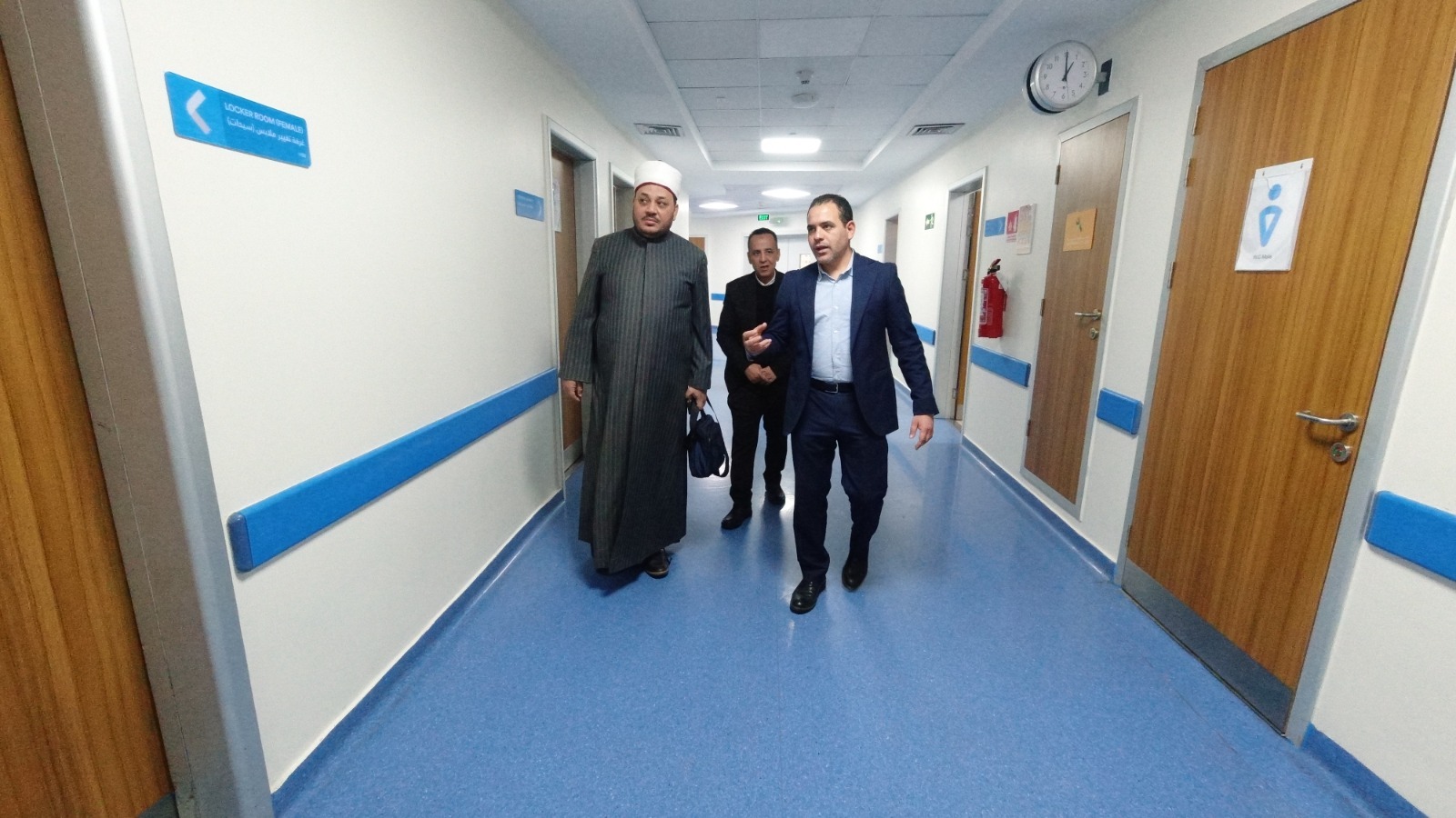تضمنت زيارة إمام وخطيب مسجد الإمام علي زين العابدين، لمستشفى الناس، جولة تفقد خلالها غرف الأطفال المرضي، وتعرف على الخدمات الطبية المقدمة لهم، كما تفقد خلال جولته جميع أقسام المستشفى بما في ذلك الصيدلية والمطبخ والمغسلة وغيرها من الأقسام التي تتعلق جميعها بتقديم أفضل خدمة ورعاية للأطفال أثناء رحلة علاجهم داخل المستشفى، إضافة إلى هذا اطلع على آلية العمل داخل أقسام الأطفال والقلب والقسطرة والجهاز الهضمي والحروق ووحدة زراعة الكبد، وكذلك تفقد المعروضات في قاعة متحف تاريخ الطب المصري.