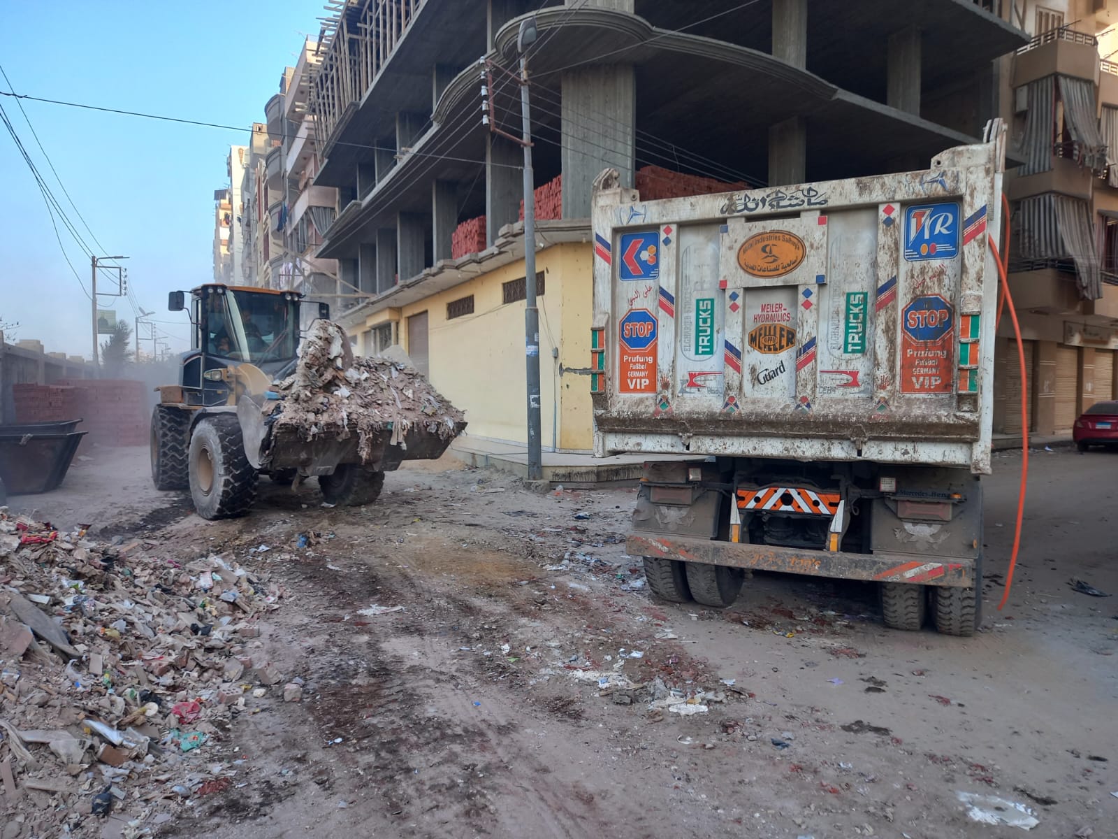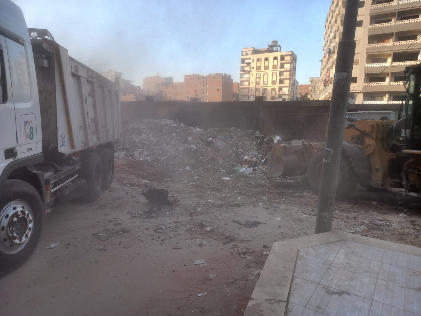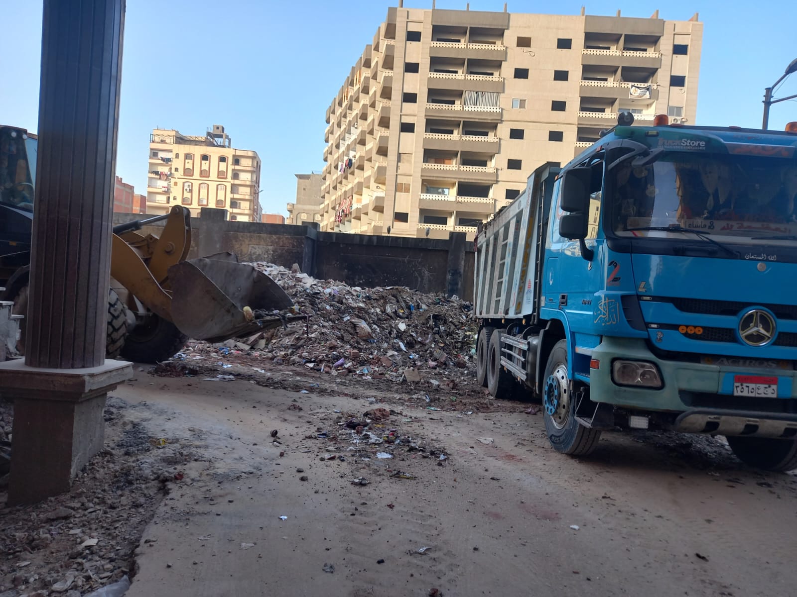 الإخلاء الجذري: رفع التراكمات التاريخية لنواتج الهدم والبناء، تكثيف أعمال رفع القمامة المنزلية المعتادة، والتخلص الآمن بنقل المخلفات إلى المقالب العمومية وفقاً للاشتراطات البيئية لضمان عدم عودتها مرة أخرى.