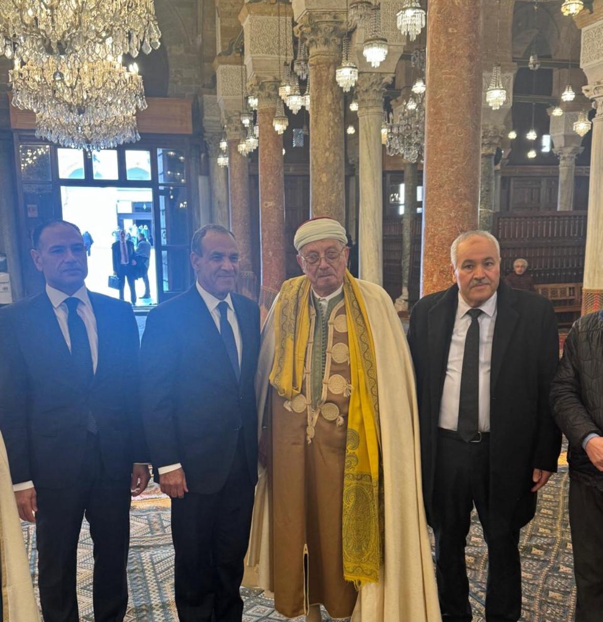 التقى د. بدر عبد العاطي وزير الخارجية والهجرة وشئون المصريين بالخارج، يوم الأحد ٢٥ يناير، بسماحة مفتي الجمهورية التونسية الشيخ هشام بن محمود، الإمام الأكبر لجامع الزيتونة المعمور، وذلك بمقر مشيخة جامع الزيتونة بتونس العاصمة، وبحضور كاتب الشؤون الدينية، حيث تناول اللقاء التأكيد على عمق الروابط التاريخية والثقافية والدينية التي تجمع بين مصر وتونس، وأهمية تعزيز التعاون والتواصل بين المؤسسات الدينية في البلدين.