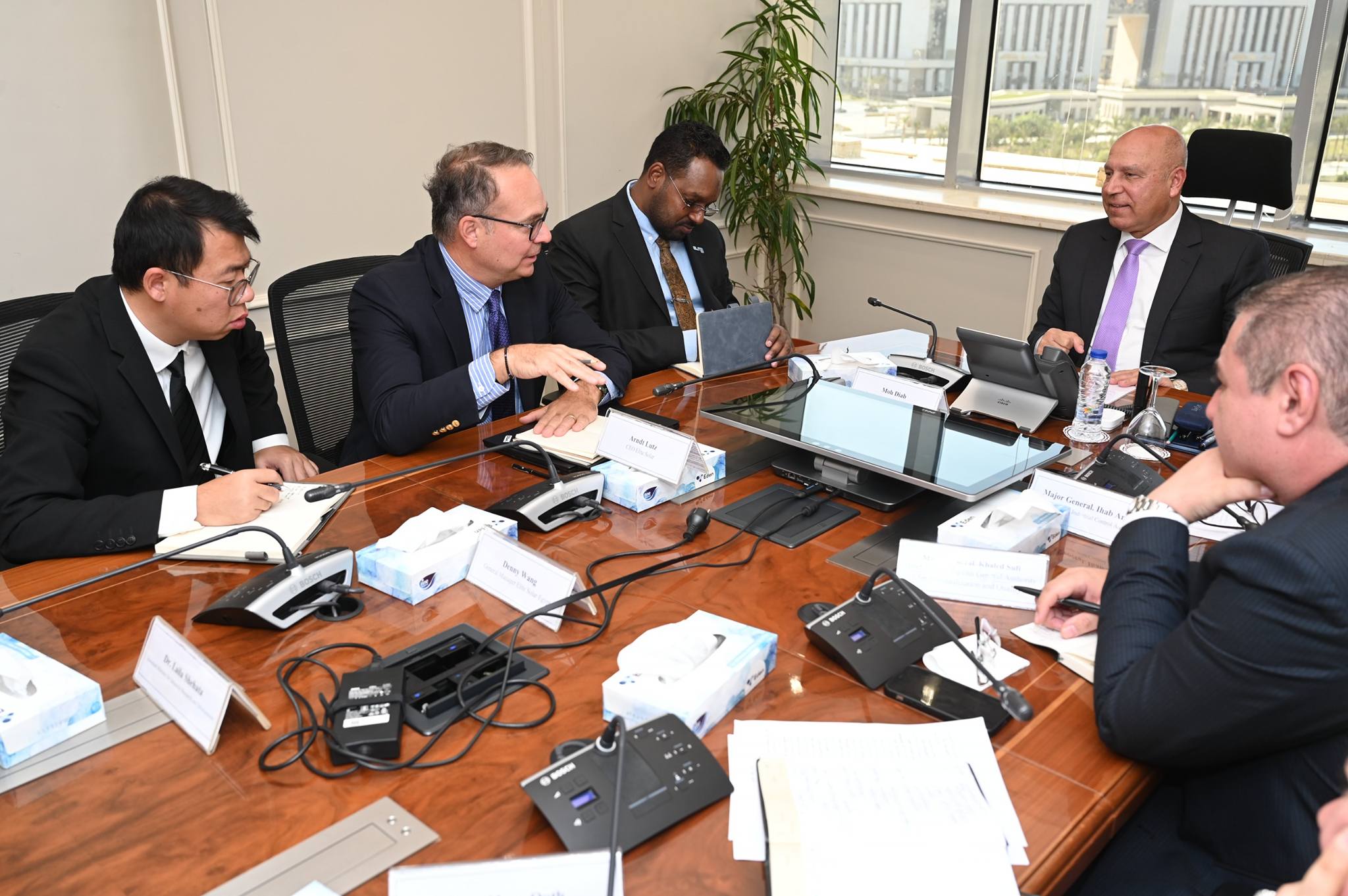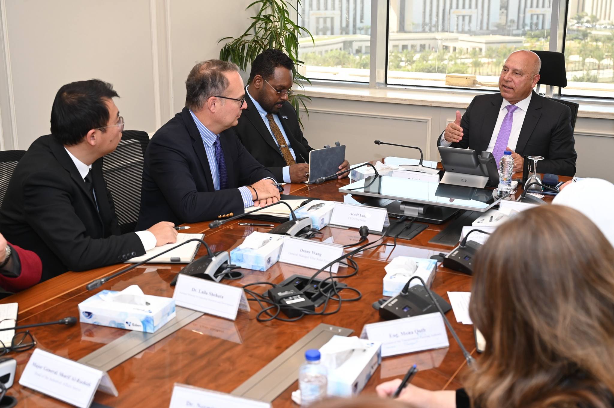 وفي مستهل اللقاء أعرب نائب رئيس مجلس الوزراء للتنمية الصناعية وزير الصناعة والنقل عن سعادته بلقاء الشركة للمرة الثانية بعد اللقاء الذي جمعهما خلال افتتاح الدكتور مصطفى مدبولي رئيس مجلس الوزراء مجمع الشركة الصناعي بالمنطقة الصناعية بالسخنة التابعة للهيئة العامة للمنطقة الاقتصادية لقناة السويس منتصف شهر يناير الجاري لإنتاج خلايا وألواح الطاقة الشمسية وذلك في إطار جهود الدولة لتعميق التصنيع المحلي لمكونات الطاقة المتجددة وتعزيز التحول نحو الاقتصاد الأخضر، لافتاً إلى حرص وزارة الصناعة على قيام الشركة بالتوسع في الإنتاج من خلال زيادة عدد المصانع وزيادة الإنتاجية وكذا تعميق التصنيع المحلي من خلال تدبير المكونات ومستلزمات الإنتاج محلياً اعتماداً على الخامات المحلية سواء بالاعتماد على الموردين المحليين أو من خلال قيام الشركة بإنشاء مصانع لإنتاج المستلزمات لتحقيق التكامل الصناعي وتوفير المكونات للشركة أو باقي الشركات العاملة في خلايا وألواح الطاقة الشمسية.