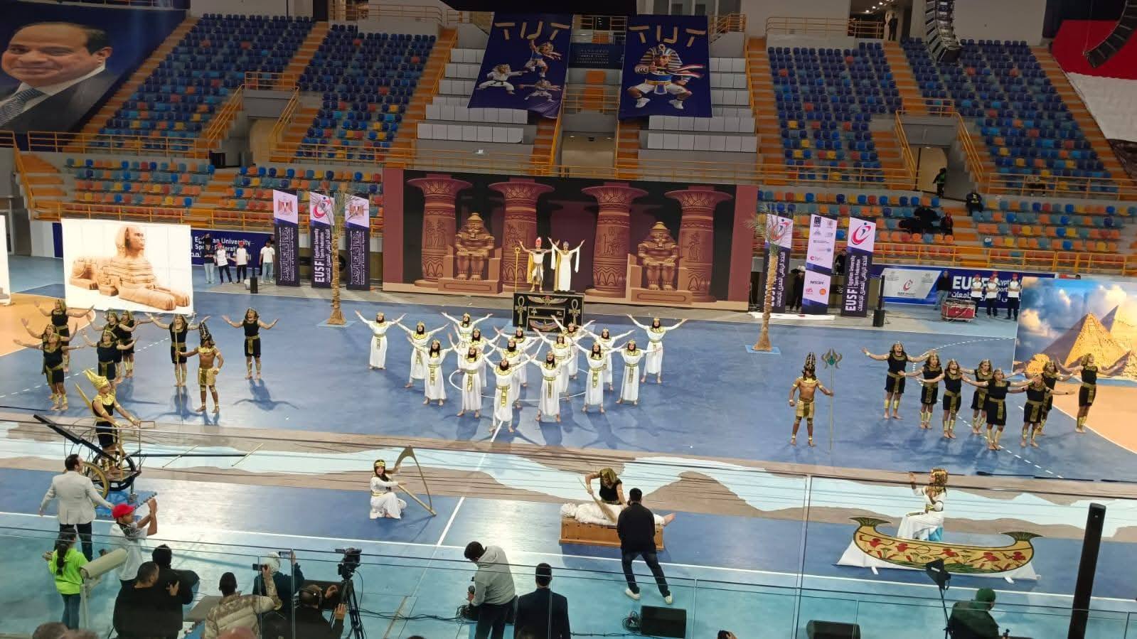 بدأ حفل الافتتاح بطابور عرض للجامعات المشاركة، أعقبه عرض فرعوني، ثم فقرة حوارية مع أبطال التايكوندو الحاصلين على ميداليات بطولة العالم بألمانيا، إلى جانب كلمة للأبطال البارالمبيين، كما شهدت الفعاليات تكريم ثلاثة طلاب فائزين في مسابقة الهوية البصرية، مع تخصيص جوائز لهم من صندوق رعاية المبتكرين والنوابغ؛ تقديرًا لإبداعهم وتميزهم، وعرض فيديو عن الاتحاد الرياضي للجامعات، ونموذج محاكاة لدوري الألعاب الإفريقية للجامعات، واختُتم الحفل بمباراة استعراضية للقيادات الطلابية بمشاركة الوزيرين.