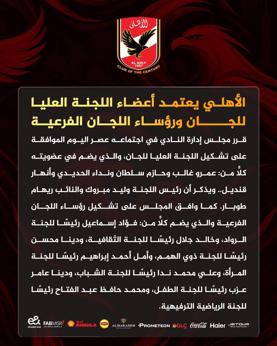 الأهلي يعتمد أعضاء اللجنة العليا للجان ورؤساء اللجان الفرعية