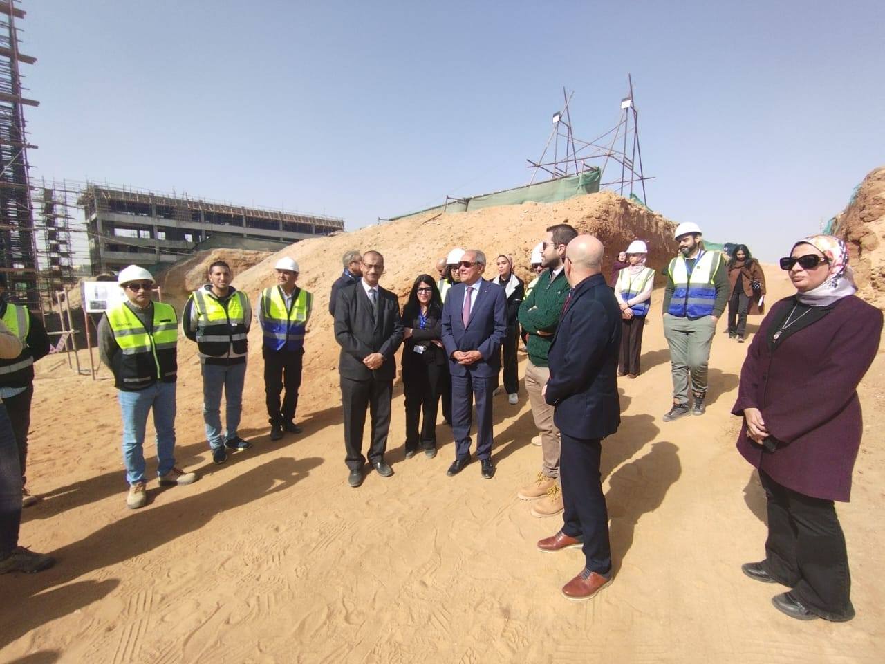 وخلال الزيارة، تم استعراض الموقف التنفيذي للأعمال بالحرم الجامعي الجديد، والاطلاع على ما تم إنجازه من معدلات تنفيذ تسير وفق الجداول الزمنية المحددة، كما ناقش الجانبان آليات دعم المشروع بما يسهم في تحويل الجامعة إلى مؤسسة أكاديمية وبحثية رائدة.