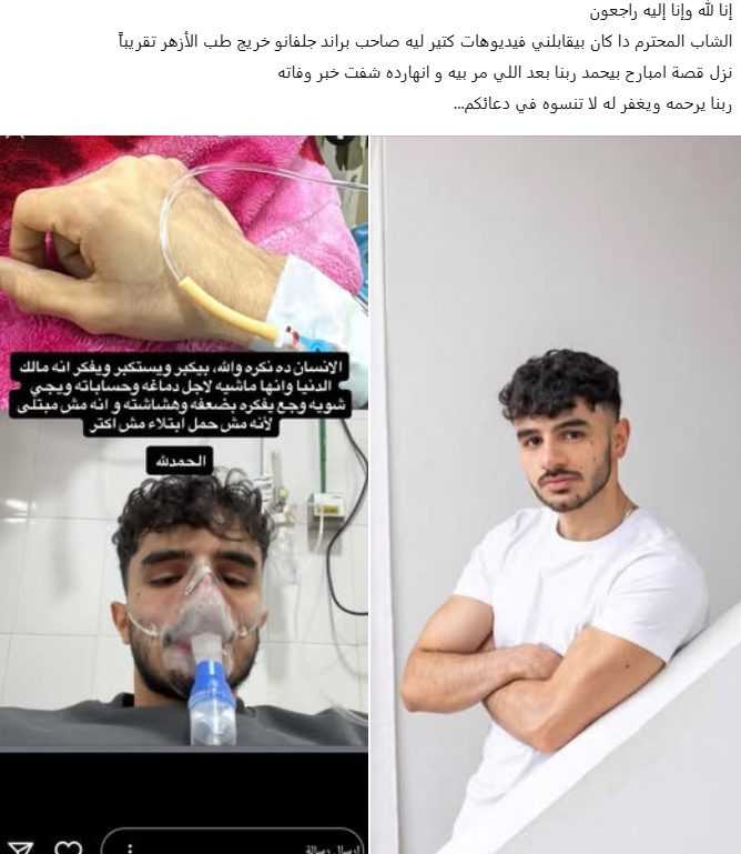 خيم الحزن على طلاب وأعضاء هيئة التدريس بكلية الطب جامعة طنطا، وعلى مستخدمي مواقع التواصل الاجتماعي، بعد إعلان وفاة الطبيب الشاب وصانع المحتوى أحمد مصطفى البراجة، دفعة 62، إثر رحلة قصيرة مع المرض، تاركًا فراغًا كبيرًا في قلوب زملائه وعائلته ومتابعيه.