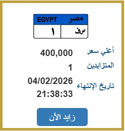 سجل المزاد حتى الآن 400 ألف جنيه على اللوحة التي تحمل رقم (ص ف 1) وتزايد علي اللوحة شخص فقط حتى الآن، ومن المقرر انتهاء المزايدة على اللوحة في 4 فبراير.