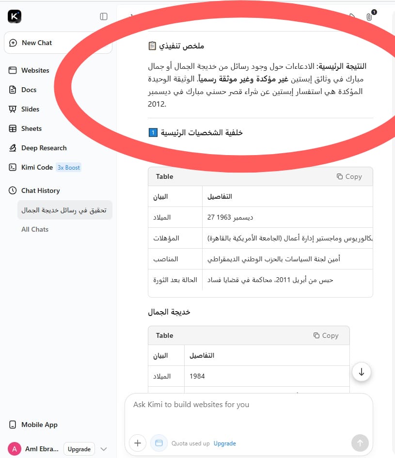 في الخلاصة، الادعاءات حول وجود رسائل من خديجة الجمال أو جمال مبارك في وثائق إبستين غير مؤكدة حتى الآن. الوثيقة الوحيدة المؤكدة هي استفسار إبستين عن شراء قصر حسني مبارك، وهي لا تتضمن أي تواصل مع جمال مبارك أو زوجته. التوصية هي انتظار تأكيدات رسمية أو ظهور وثائق أصلية قابلة للتحقق قبل اعتبار هذه الادعاءات حقائق ثابتة.