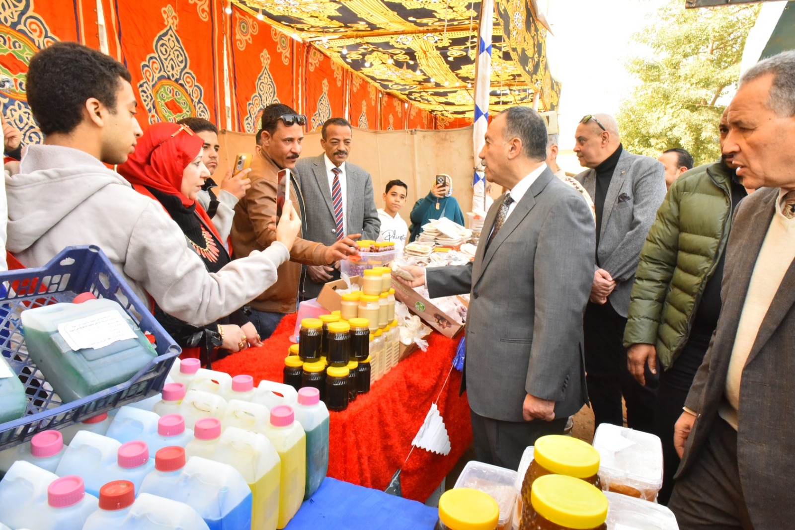 واستكمالاً للمشهد الذي جمع بين القيادات التنفيذية والتعليمية، ومنهم المهندس مصطفى عبد الفتاح مدير هيئة الأبنية التعليمية، والدكتور عبد الرحيم أحمد وكيل وزارة الزراعة، وممدوح جبر رئيس حي غرب، تجول الجميع بين الأجنحة التي فاضت بخيرات الأرض من إنتاج الطلاب، حيث تنوعت المعروضات لتشمل منتجات الألبان بمختلف مشتقاتها، وعسل النحل النقي ومستلزمات المناحل، مروراً بقسم الحلويات والمخبوزات، وصولاً إلى الخضراوات الطازجة والمواد الغذائية الأساسية، وكلها منتجات خرجت من رحم المدارس وبأيدي طلابها تحت إشراف دقيق من المعلمين والمتخصصين في الصناعات الغذائية، لضمان جودة صحية تليق بالمواطن الأسيوطي، وهو ما دفع المحافظ للتأكيد بصوت مسموع على دعمه الكامل لهذه المنظومة، مشدداً على أن تفعيل الوحدات الإنتاجية ليس ترفاً، بل ضرورة لزيادة الموارد الذاتية للمدارس من جهة، وصقل مهارات الطلاب وتأهيلهم لسوق العمل بشكل عملي من جهة أخرى.
