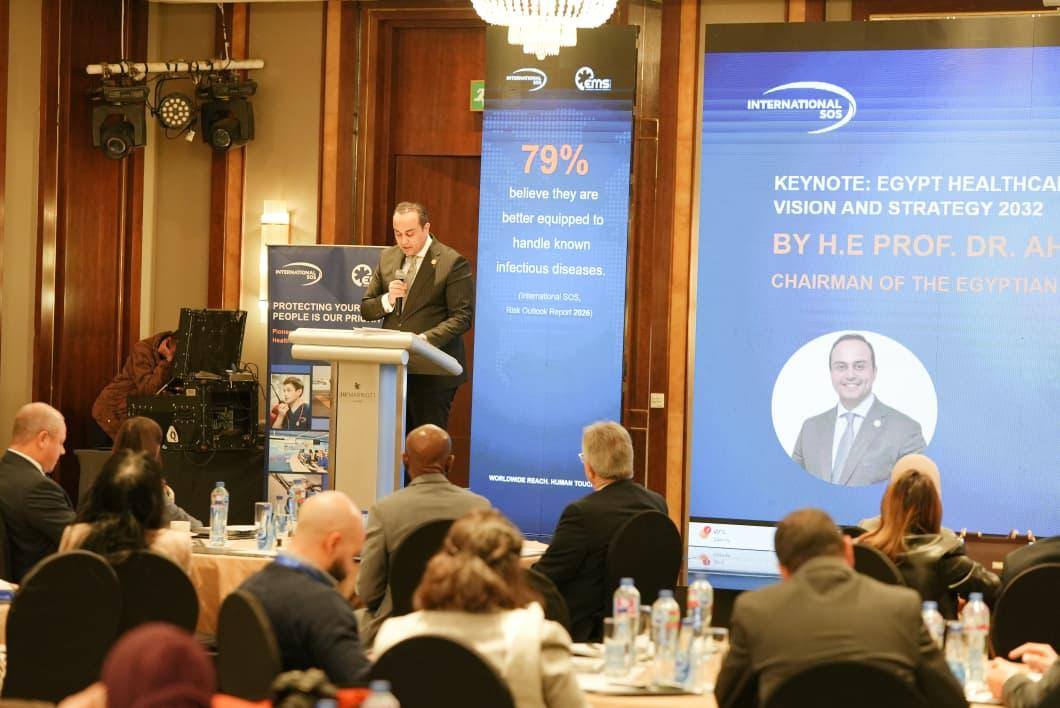 وفي مستهل كلمته الافتتاحية، رحّب رئيس الهيئة بضيوف مصر من منظمة International SOS، مثمنًا مشاركتهم، ومؤكدًا اعتزاز الهيئة بالشراكة الاستراتيجية الممتدة مع المنظمة.