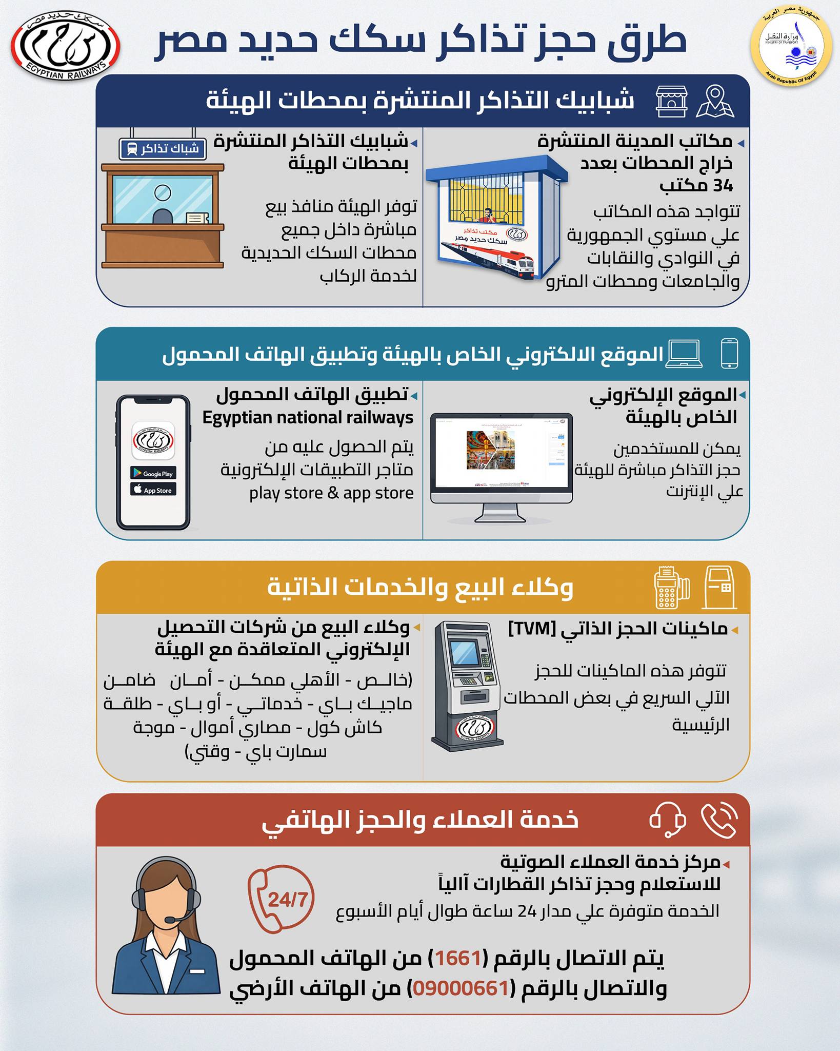 تعلن الهيئة عن تشغيل عدد 2 قطار بعربات (نوم / VIP PREMIUM ) كخدمة جديدة مكيفة بين ( القاهرة / أسوان) والعكس إعتباراً من يوم السبت الموافق 7 / 2 / 2026.