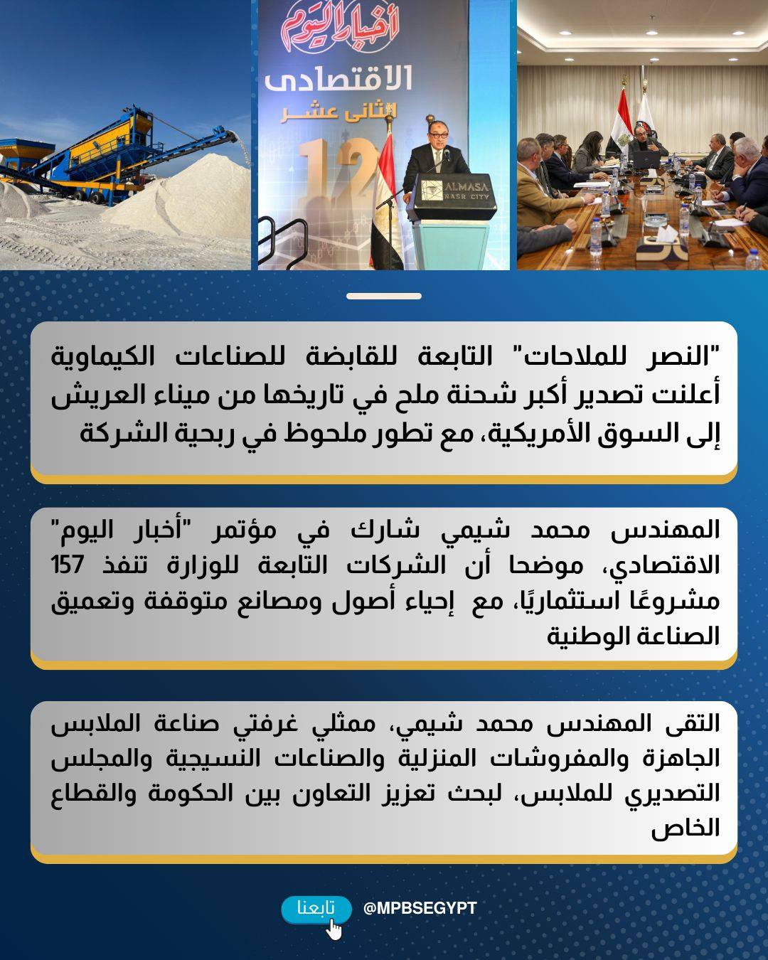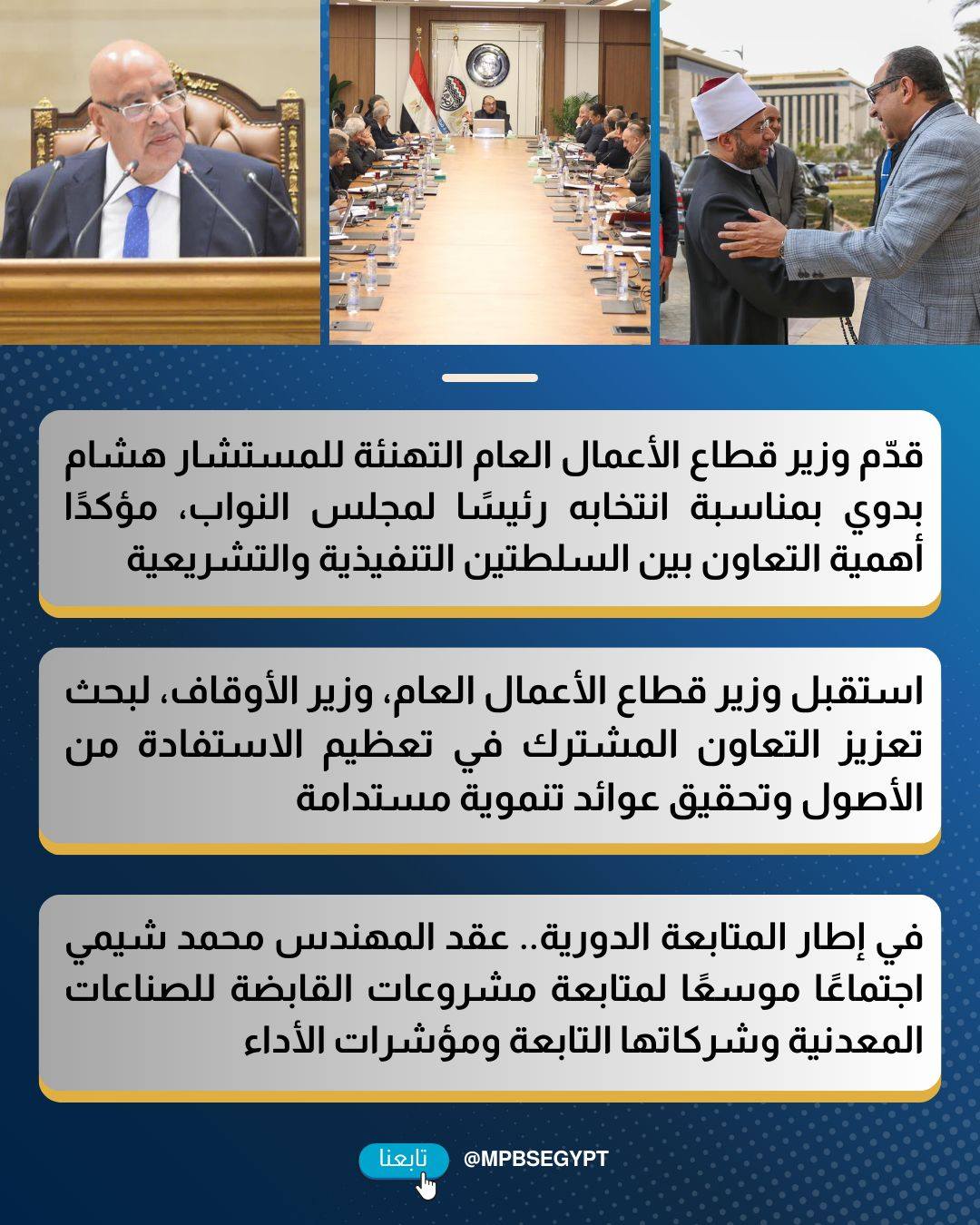 كما تم استعراض حصاد عام 2025، الذي عكس تحسن مؤشرات الأداء وارتفاع إيرادات الشركات التابعة، وتحقيق نتائج إيجابية في التصدير ونمو الأرباح، مما يعكس نجاح خطط التطوير والتحسين في قطاع الأعمال العام.