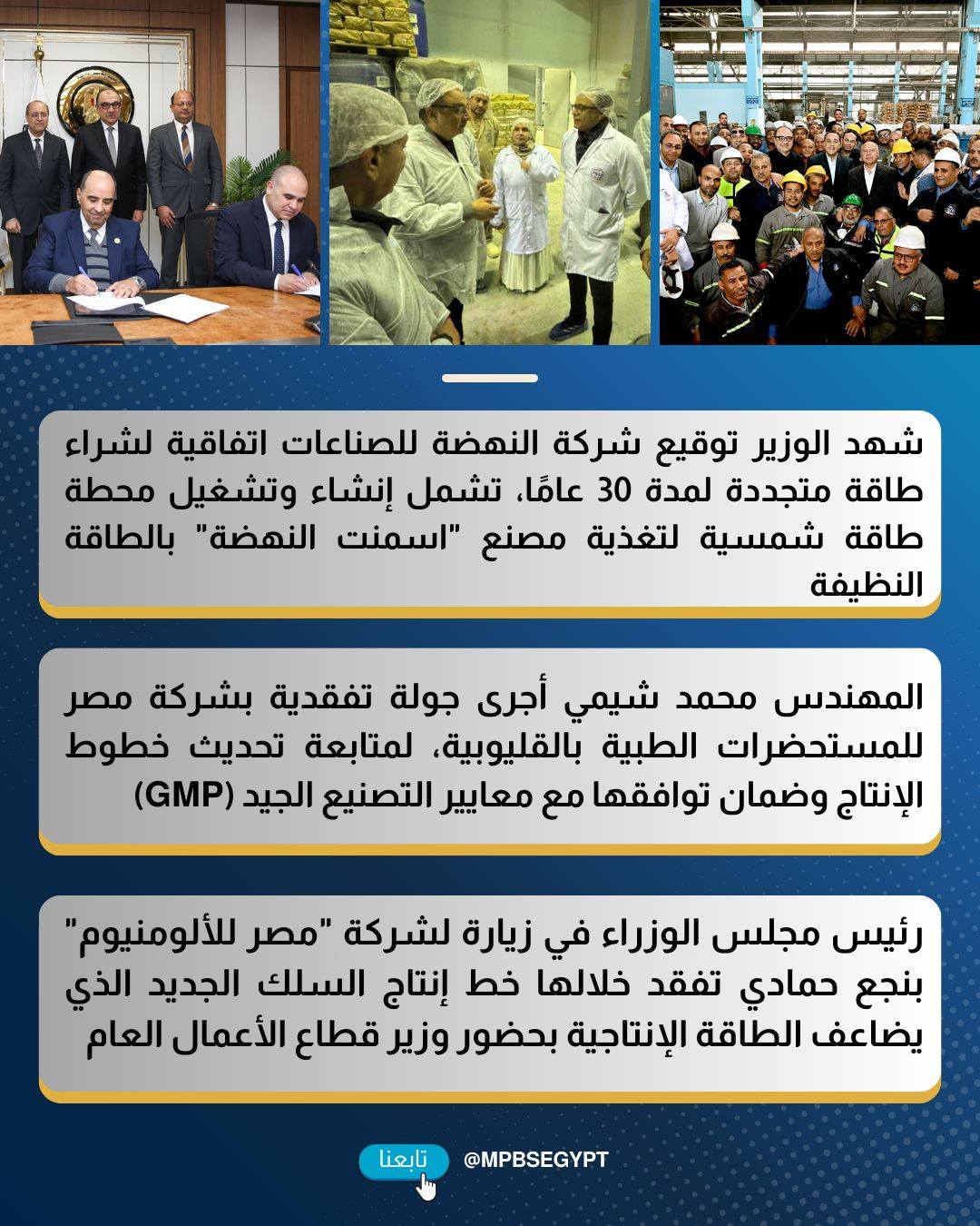 واستمرت الوزارة في متابعة مشروعات تطوير وتحديث خطوط الإنتاج في عدد من الشركات التابعة، وخاصة في قطاعات الأدوية والألومنيوم والكيماويات، بهدف رفع جودة المنتجات وزيادة القدرة الإنتاجية.