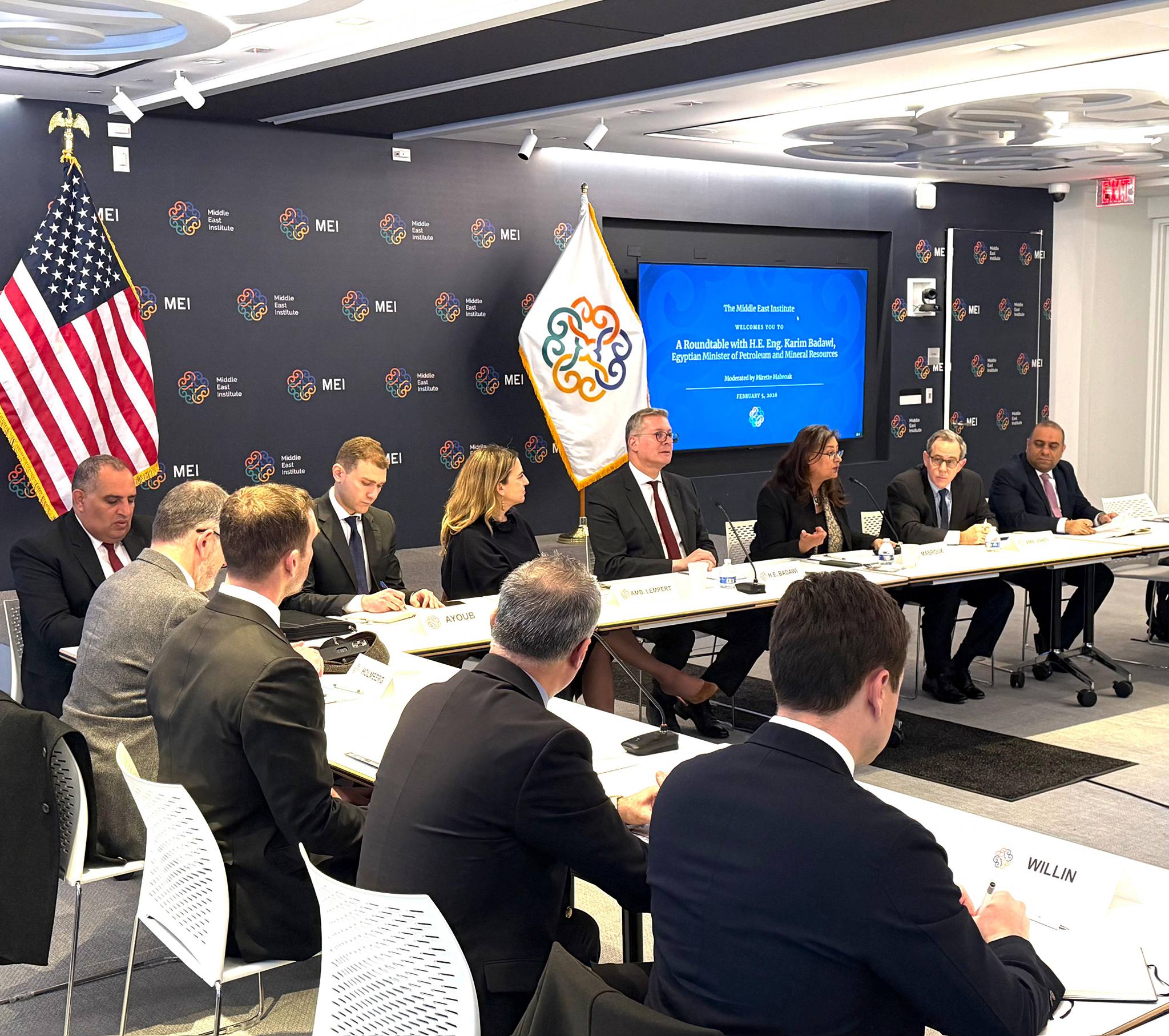 استضاف معهد الشرق الأوسط بواشنطن (MEI) المهندس كريم بدوي وزير البترول والثروة المعدنية في لقاء مائدة مستديرة موسع، بحضور لفيف من الخبراء والمتخصصين في شؤون الشرق الأوسط، حيث تم إلقاء الضوء على الدور المحوري لمصر كمركز إقليمي لتداول وتجارة الطاقة.