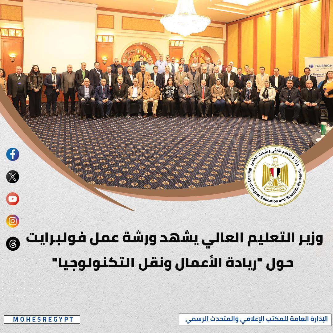 شهد الوزير فعاليات ورشة عمل هيئة فولبرايت بعنوان "سلسلة برامج القيادة الجامعية 2026: من الفكرة إلى النظام البيئي: ريادة الأعمال ونقل التكنولوجيا"، مؤكدًا دعم الوزارة والجامعات لريادة الأعمال والابتكار كأحد أهم مبادئ الاستراتيجية الوطنية للتعليم العالي والبحث العلمي، وربط الأبحاث العلمية بالصناعة لتعزيز الاقتصاد الوطني.