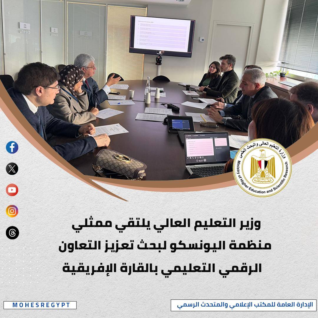 شارك الوزير في اجتماع مع مسؤولي اليونسكو لمناقشة فرص تعميق التعاون مع الجامعة الدولية للعلوم والفنون والتكنولوجيا، مشيرًا إلى تطور العلاقات خلال الفترة الماضية وتوقيع اتفاقيات وبروتوكولات تعاون مشتركة.