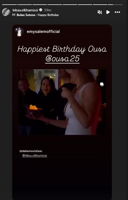 ونشرت لقاء الخميسي فيديو من جانب الاحتفاء على أغنية عيد ميلاد سعيد، وذلك عبر حسابها الرسمي بموقع التواصل الاجتماعي، وعلقت عليها قائلة: عيد ميلاد سعيد أوسا".