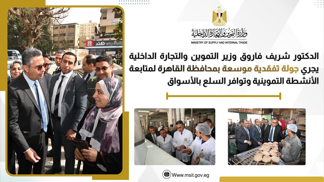 وأجرى وزير التموين جولة تفقدية بمحافظة القاهرة شملت عددًا من الأحياء والمخابز والمجمعات الاستهلاكية، لمتابعة توافر السلع وجودتها وانتظام منظومة الخبز المدعم. كما افتتح، بالتعاون مع وزير الزراعة ومحافظ الجيزة، معرض السلع الغذائية بالمتحف الزراعي، ضمن خطة الدولة لتخفيف الأعباء عن المواطنين قبل شهر رمضان.
