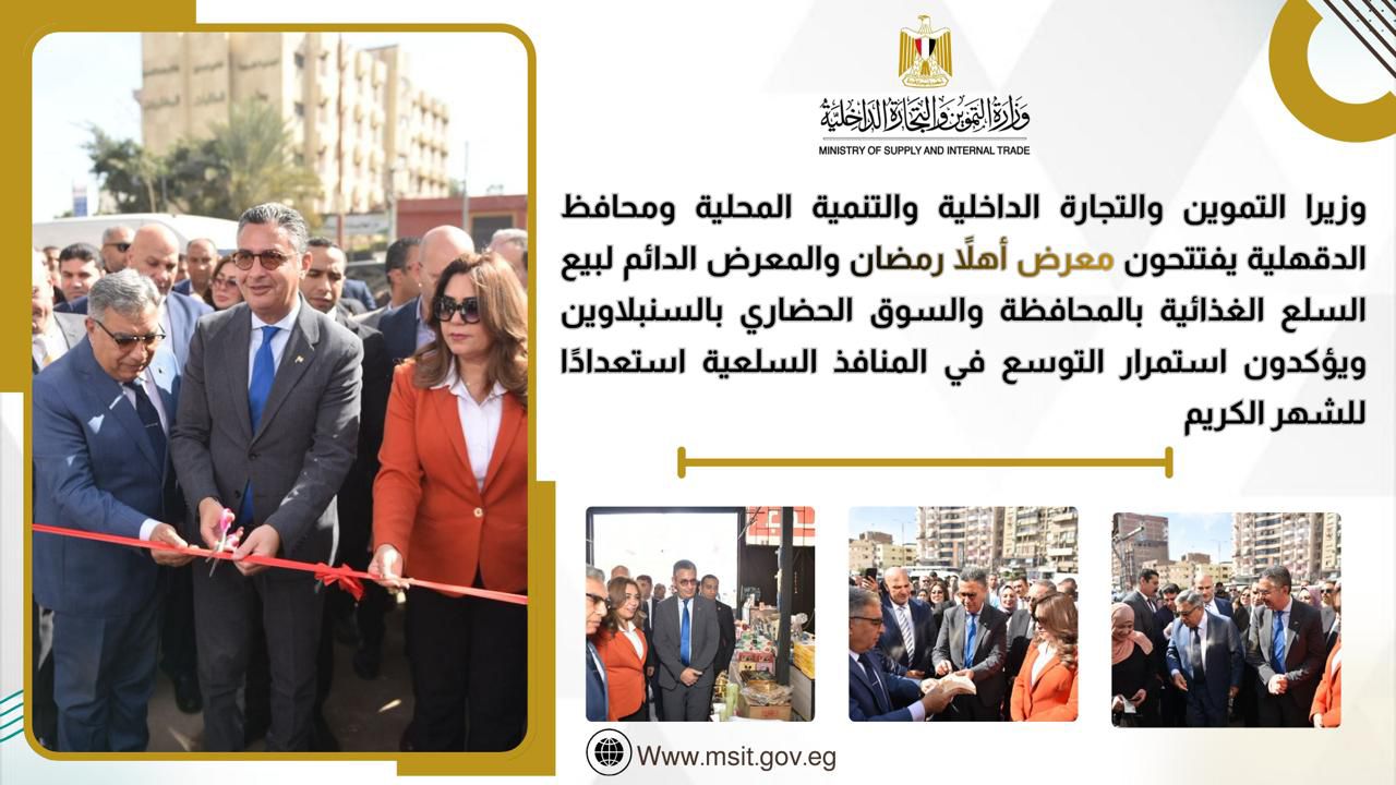 واختتمت الفترة بجولة تفقدية بمحافظة الدقهلية، شارك خلالها وزير التموين ووزيرة التنمية المحلية ومحافظ الدقهلية في افتتاح وتفقد عدد من المشروعات التموينية والخدمية، في إطار تعزيز منظومة الأمن الغذائي وتحسين جودة الخدمات المقدمة للمواطنين.