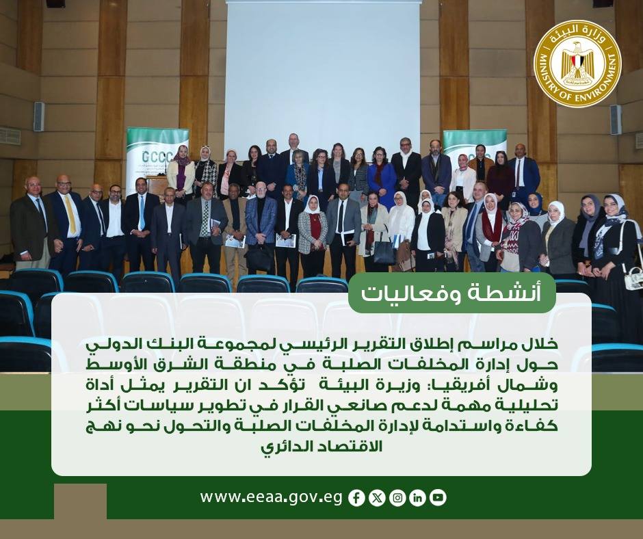 فى إطار توجيهات الدكتورة منال عوض وزيرة التنمية المحلية والقائم بأعمال وزير البيئة، وزارة البيئة تطلق التقرير الرئيسي لمجموعة البنك الدولي حول إدارة المخلفات الصلبة في منطقة الشرق الأوسط وشمال أفريقيا، وتؤكد على أن التقرير يمثل أداة تحليلية مهمة لدعم صانعي القرار في تطوير سياسات أكثر كفاءة واستدامة لإدارة المخلفات الصلبة والتحول نحو نهج الاقتصاد الدائري.