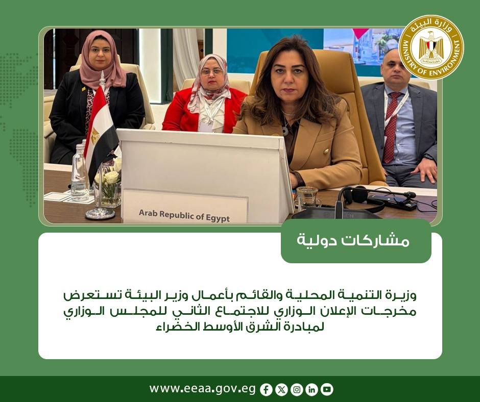 د. منال عوض، تشارك في الاجتماع الثاني للمجلس الوزاري لمبادرة الشرق الأوسط الخضراء، وتؤكد أن المبادرة تعد منصة بيئية مشتركة تعزز التعاون الإقليمي لتلبية ضرورة تسريع الحفاظ على النظم البيئية وإعادة بناء المتدهور منها، حيث تسلط الضوء على أبرز التحديات المناخية التي تواجه المنطقة، وأهمية مكافحة التصحر وإعادة تأهيل الأراضي وإصلاح النظم البيئية المختلفة، وبالأخص في مناطق شديدة الحساسية للتصحر والجفاف مثل المنطقة العربية وإقليم الشرق الأوسط.