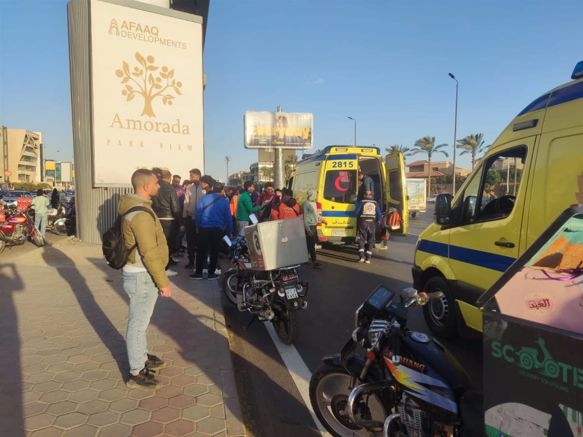 شهد التجمع الخامس، حادث سير أسفر عن إصابة 6 أشخاص، بينهم 5 سيدات وشاب، أثناء عبورهم الطريق أمام مول كونكورد بلازا.