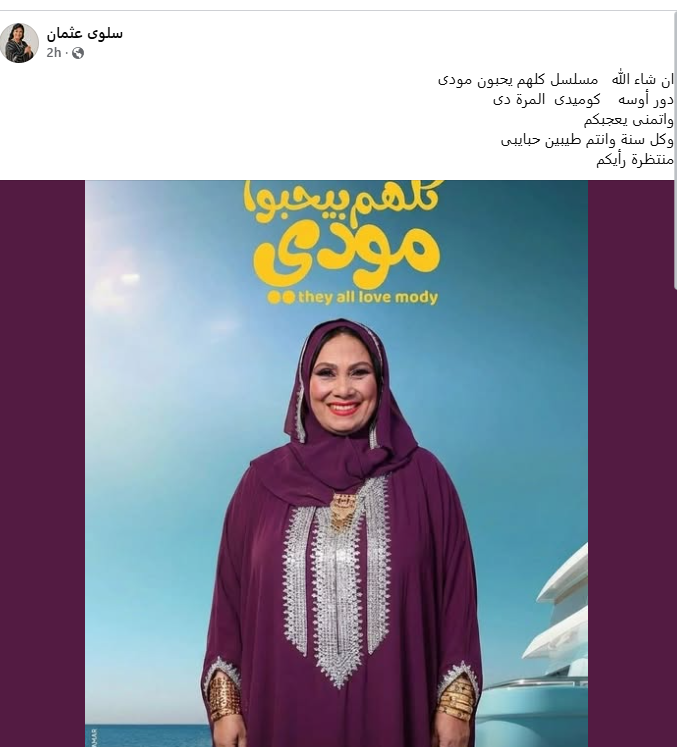 روجت الفنانة سلوى عثمان لدورها في مسلسل كلهم بيحبوا مودي بطولة ياسر جلال، المقرر عرضه في الموسم الرمضاني المُقبل 2026.