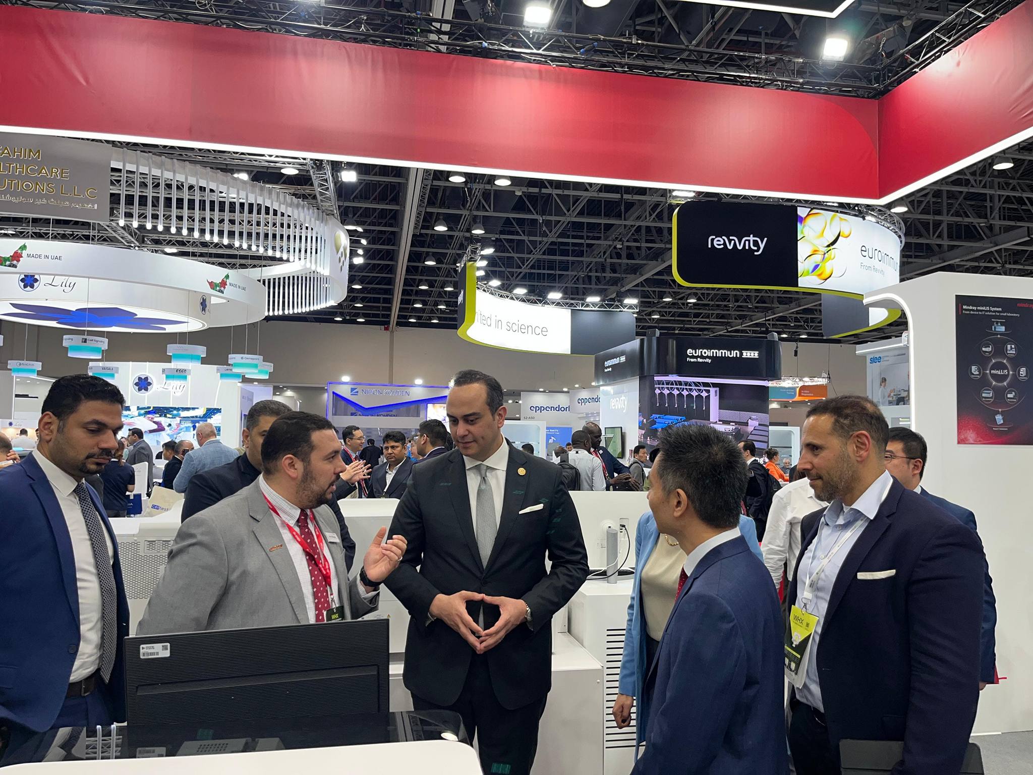 كما قام رئيس الهيئة بتفقد أجنحة شركات سيسمكس (Sysmex) ومندراي (Mindray) والهدي (ElHuda)، إلى جانب مجموعة من الشركات الأخرى في الجناح المصري، حيث اطلع على أحدث الابتكارات في الأجهزة والمستلزمات الطبية والمعملية، مناقشًا فرص التعاون ودعم نمو الشركات المصرية محليًا ودوليًا.