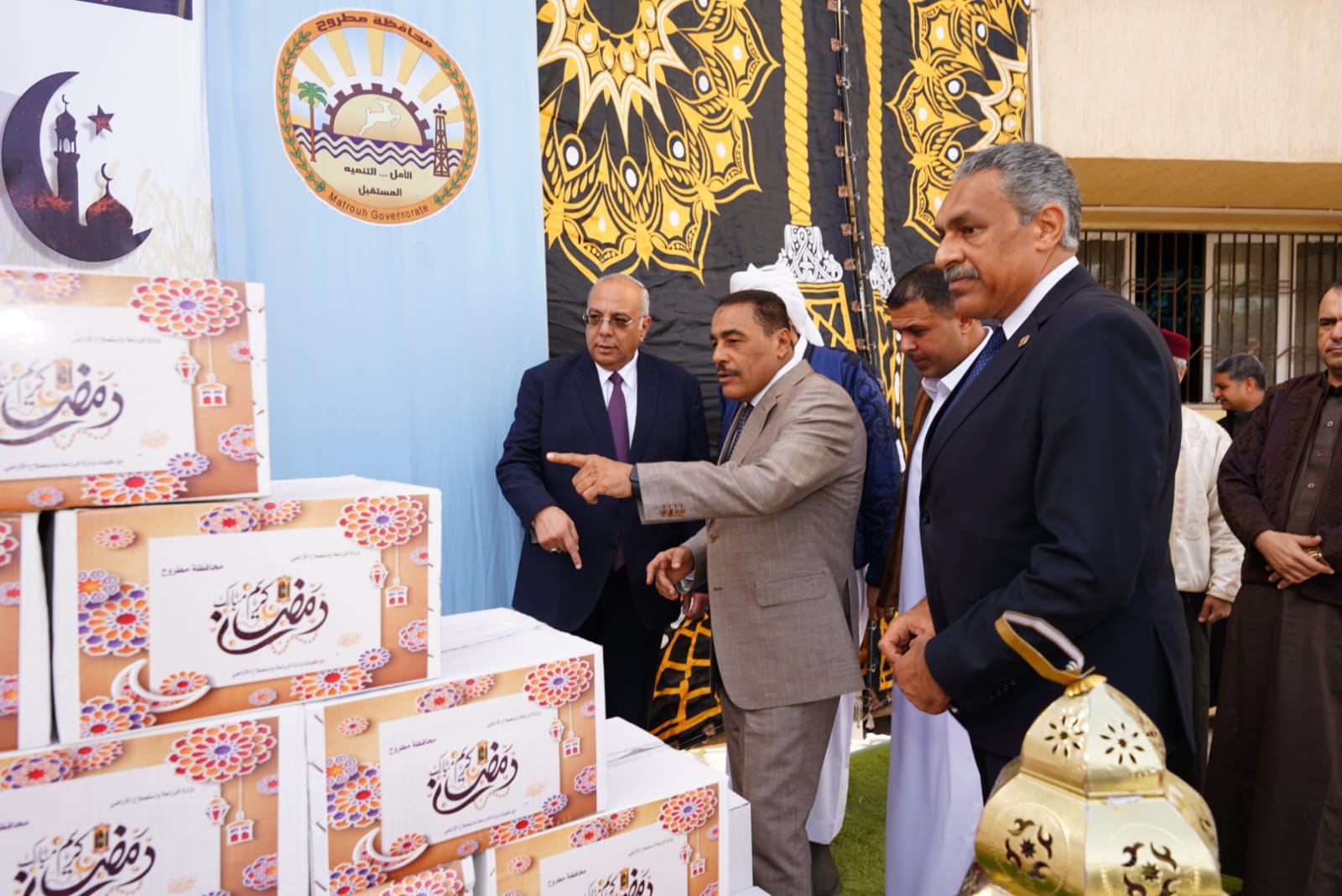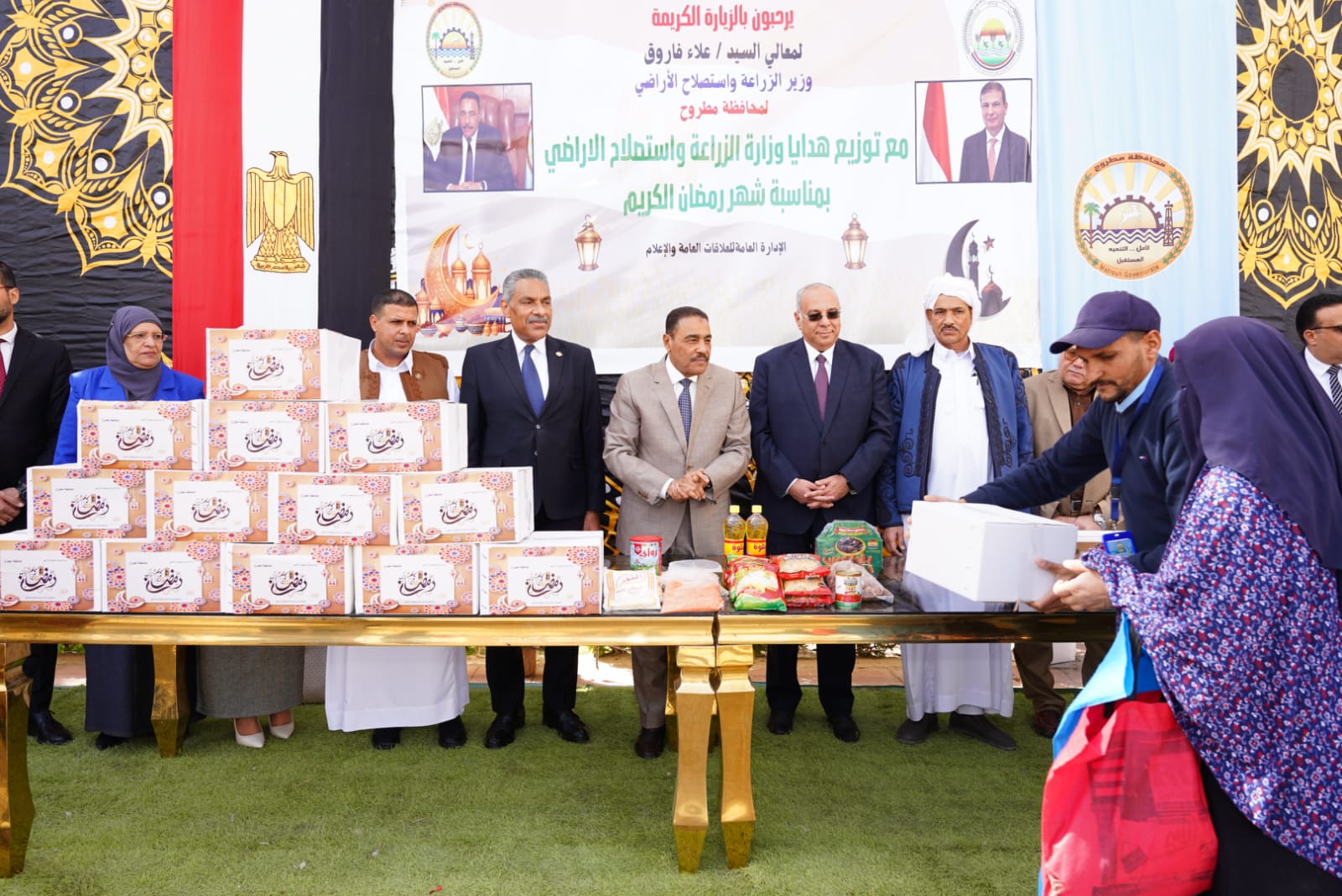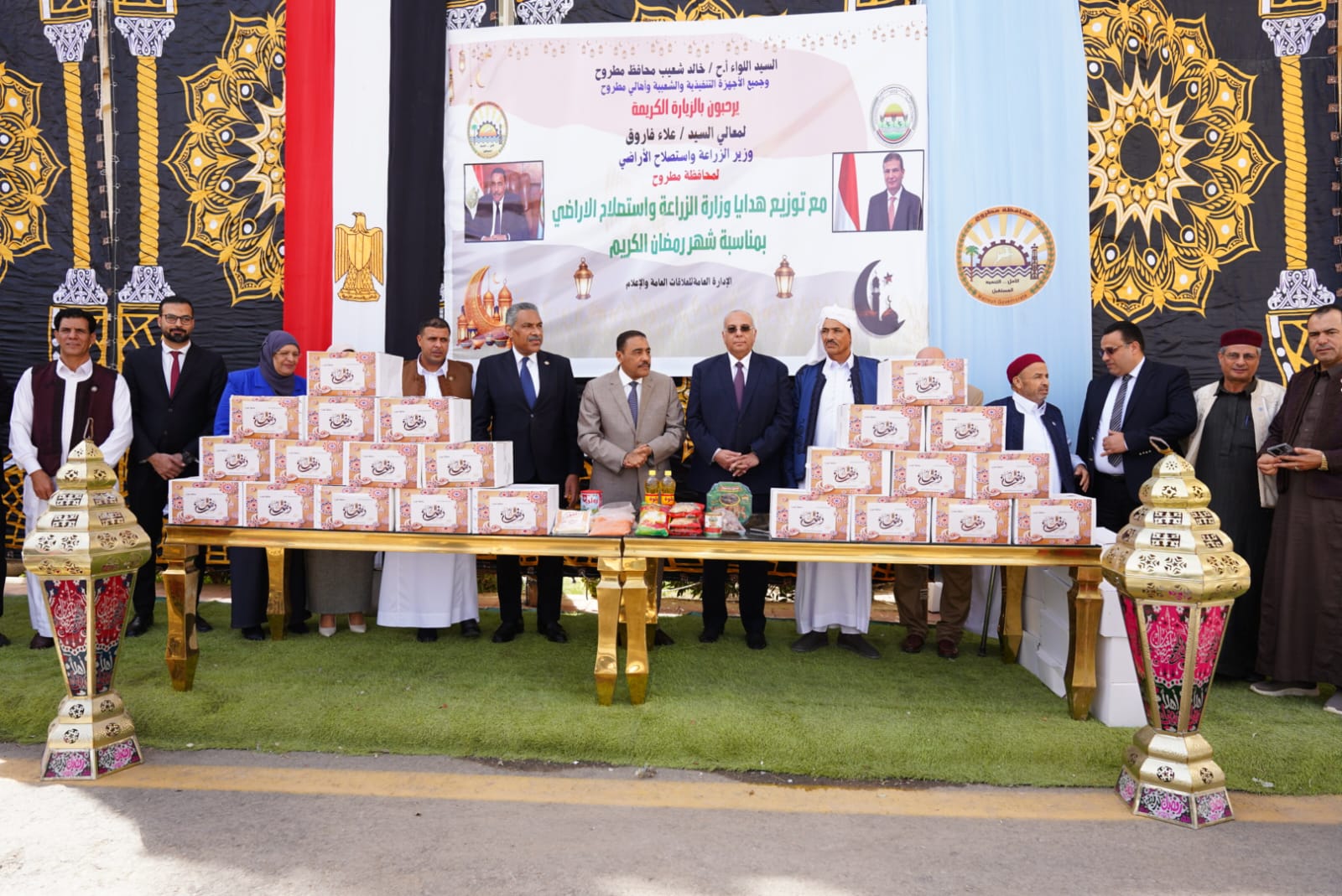 وشهد اللواء خالد شعيب، محافظ مطروح، والأستاذ الدكتور حسام شوقي، رئيس مركز بحوث الصحراء – نائباً عن علاء فاروق وزير الزراعة واستصلاح الأراضي – فعالية توزيع 2000 كرتونة مواد غذائية مهداة من الوزارة لأهالي المحافظة.