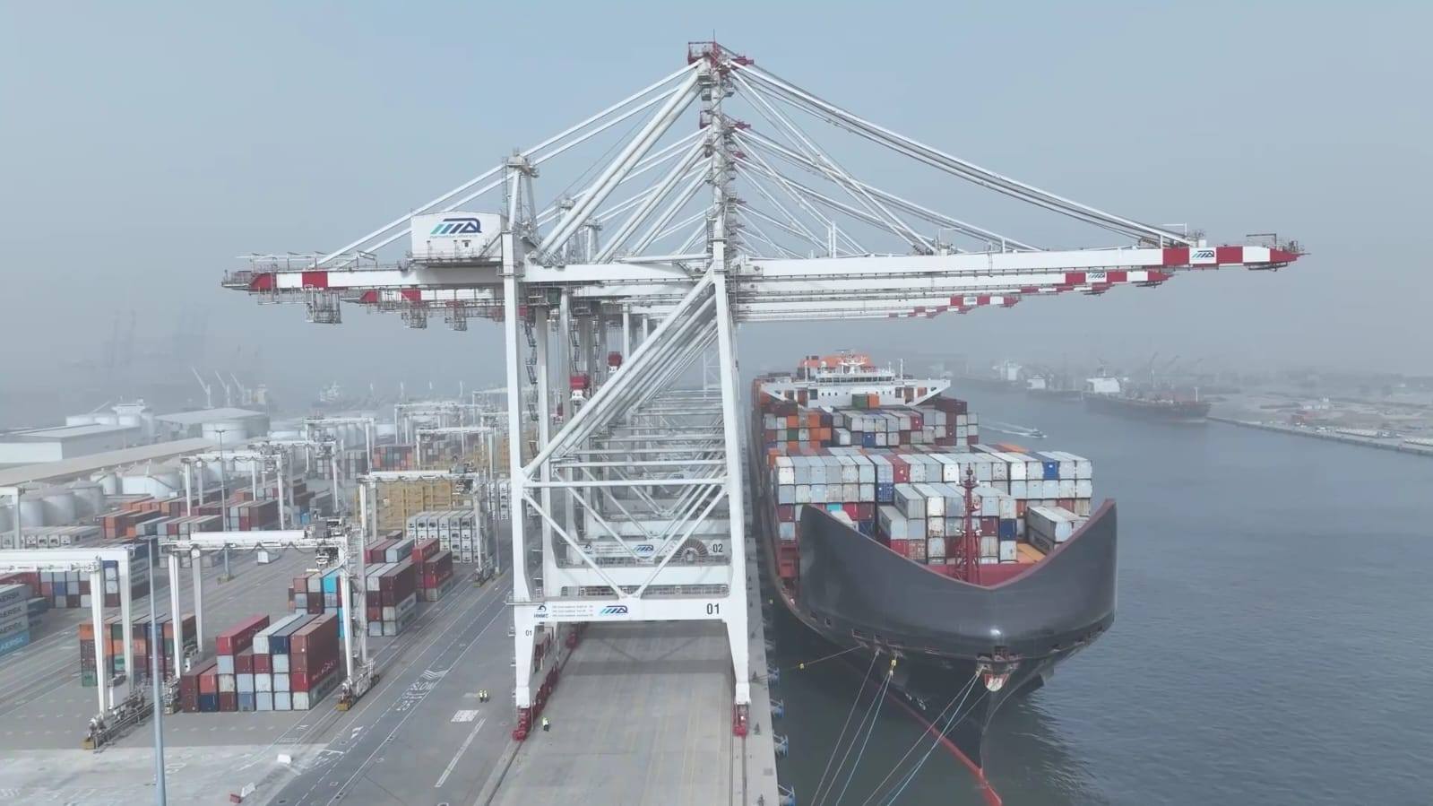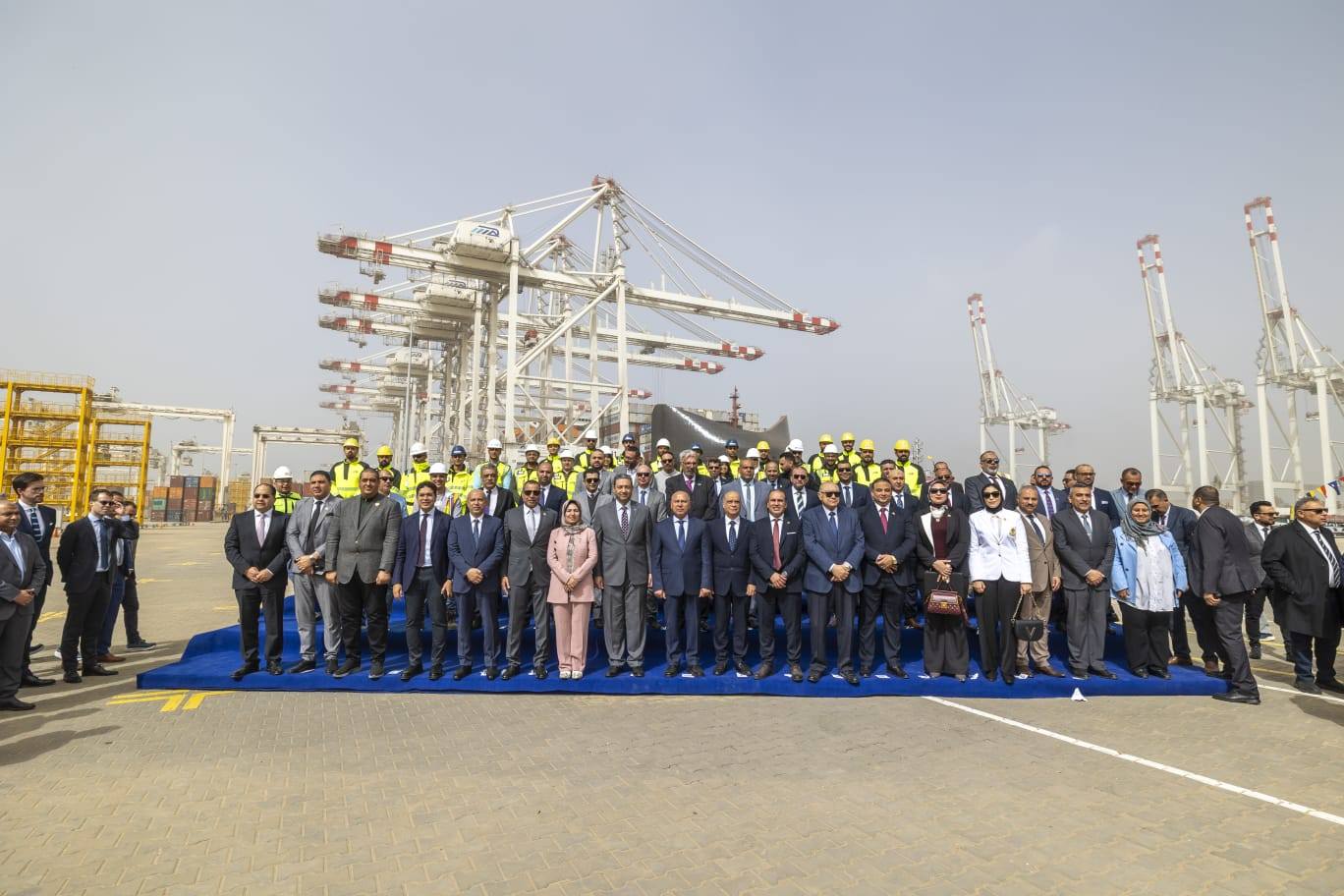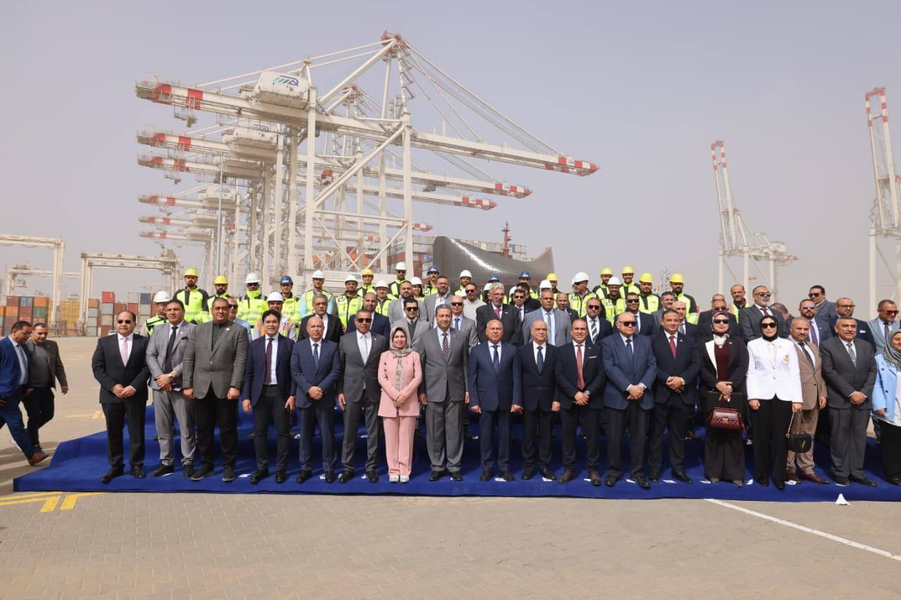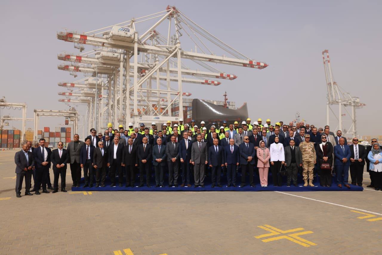 خلال التشغيل التجريبي التجاري لمحطة الحاويات "تحيا مصر 1" بميناء دمياط