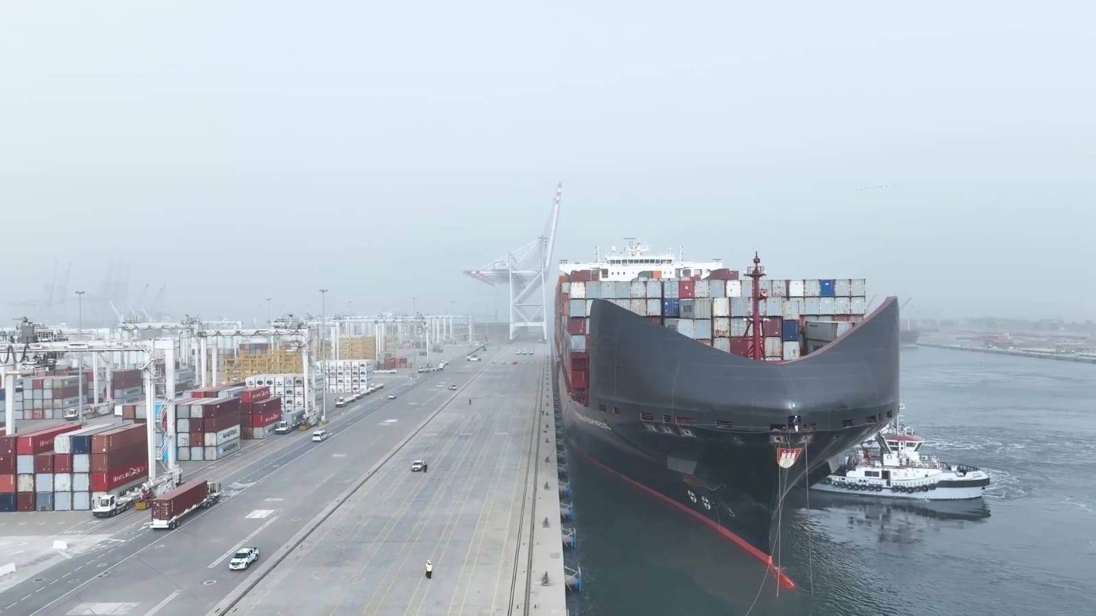 بالإضافة الى تزامنه مع استقبال سفينة الحاويات ESSEN EXPRESS ، بما يعكس دخول المحطة مرحلة التشغيل الفعلي المنتظم وبدء تقديم خدماتها التجارية على أرض الواقع، وذلك في إطار شراكة دولية ناجحة تجمع بين الدولة المصرية وتحالف عالمي يمتلك خبرات تشغيلية ممتدة في كبرى موانئ العالم كما يعكس حضور عدد من الملحقين التجاريين الأوروبيين وممثلي الخطوط الملاحية الكبرى حجم الاهتمام الدولي بالمشروع، والثقة المتزايدة في مناخ الاستثمار بالموانئ المصرية، بالتزامن مع ما تشهده من طفرة غير مسبوقة على مستوى البنية التحتية والتطوير المؤسسي لافتا الى أن هذا المشروع يأتي تنفيذه ضمن خطة وزارة النقل لجذب أكبر الشركات العالمية المشغلة للخطوط الملاحية للاستثمار داخل الموانئ المصرية، وكذلك في إطار تنفيذ الممر اللوجيستي التنموي المتكامل (طنطا – المنصورة – دمياط) .