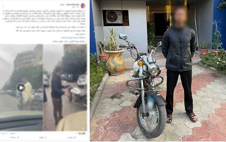 تبين من الفحص، عدم ورود بلاغات رسمية في الواقعة، وتمكنت الأجهزة الأمنية من تحديد وضبط الدراجة النارية وقائدها، وتبين أنه مقيم بدائرة قسم شرطة عين شمس. وبمواجهته أقر بارتكاب الواقعة، مبررًا ذلك بقيام الشاكية بالاصطدام به من الخلف.