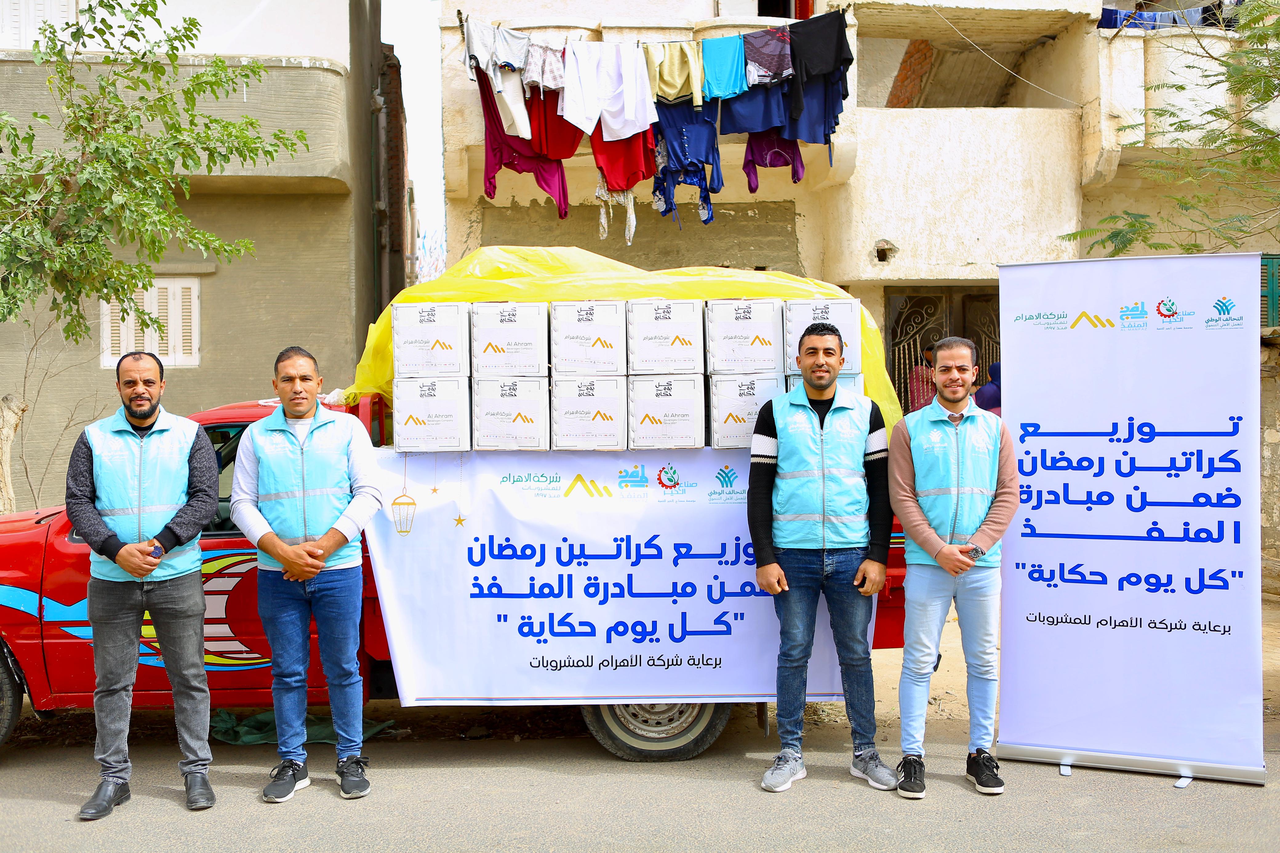 وجاءت البداية، بتوزيع الكراتين المعبئة بالمواد الغذائية على الأسر الأولى بالرعاية في محافظة البحيرة بالتنسيق مع شركة الأهرام للمشروعات، وذلك على أسر قرى «السناوي والغيتة وجناكليس وأبو العدا وسيدي دمين ومركز أبو المطامير».