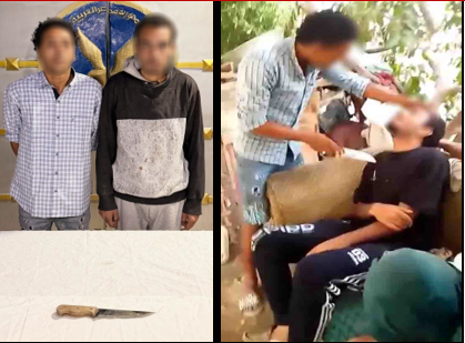 من الفحص، تم تحديد هوية الشخصين الظاهرين في الفيديو، وتبين أنهما عامل وصديقه من ذوي الاحتياجات الخاصة، ومقيمان بمحافظة بني سويف، كما تم ضبط السلاح الأبيض المستخدم في المقطع بحوزة الأول.