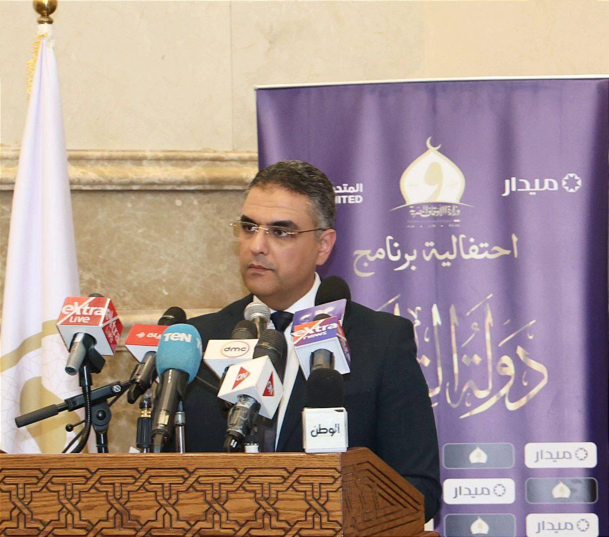 عقدت وزارة الأوقاف، بالتعاون مع المتحدة للخدمات الإعلامية، احتفالية لعرض تفاصيل الحفل الختامي لبرنامج «دولة التلاوة» في موسمه الأول، برعاية شركة ميدار للاستثمار والتنمية العمرانية، وذلك بمركز مصر الثقافي الإسلامي في مسجد مصر الكبير بالعاصمة الجديدة، بحضور نخبة من كبار العلماء وأعضاء لجنة التحكيم والمشاركين في المسابقة.