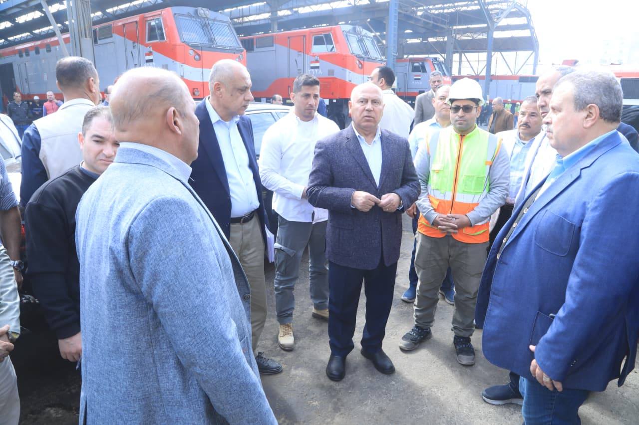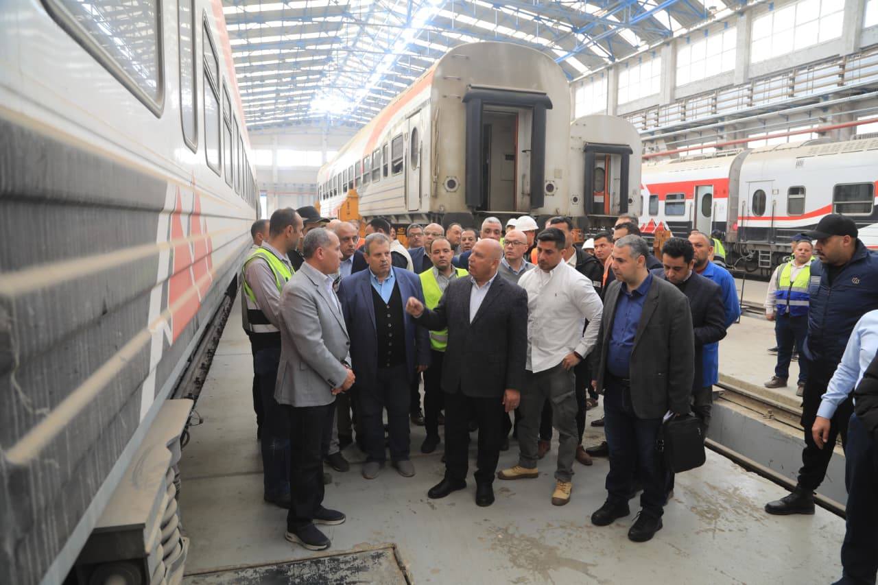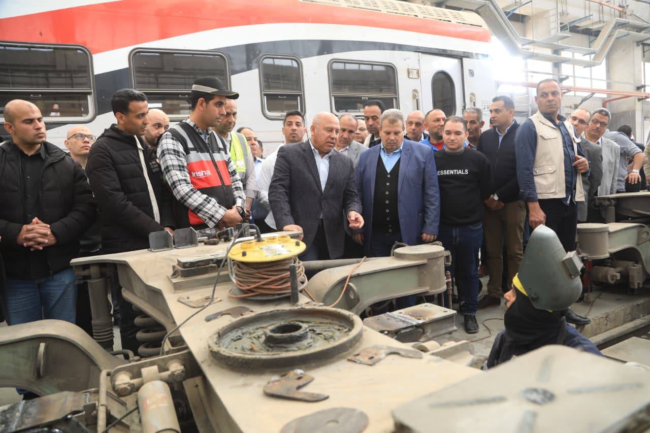 وزير النقل يتفقد ورش السكك الحديدية بأبو غاطس والفرز لمتابعة أعمال الصيانة والتجهيز اليومي