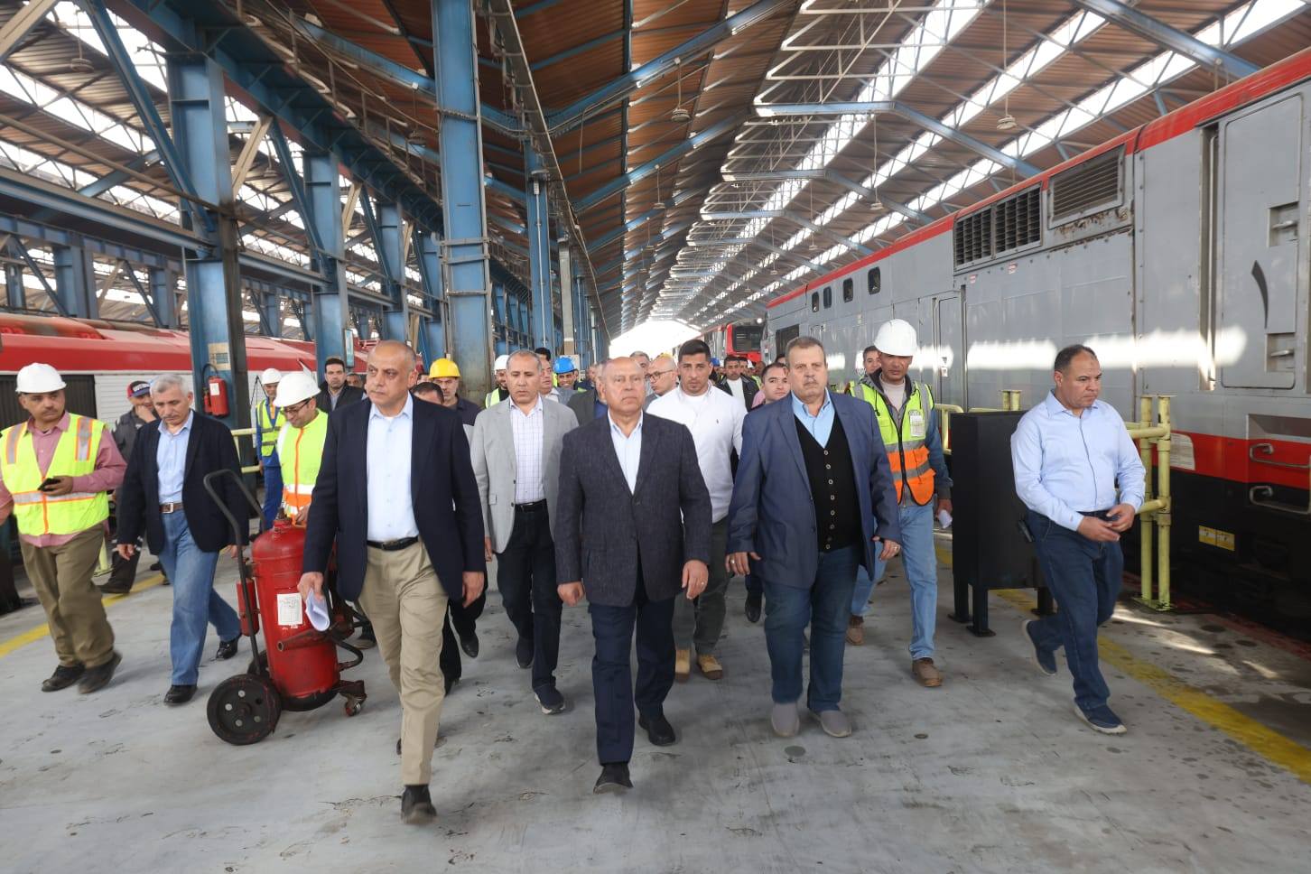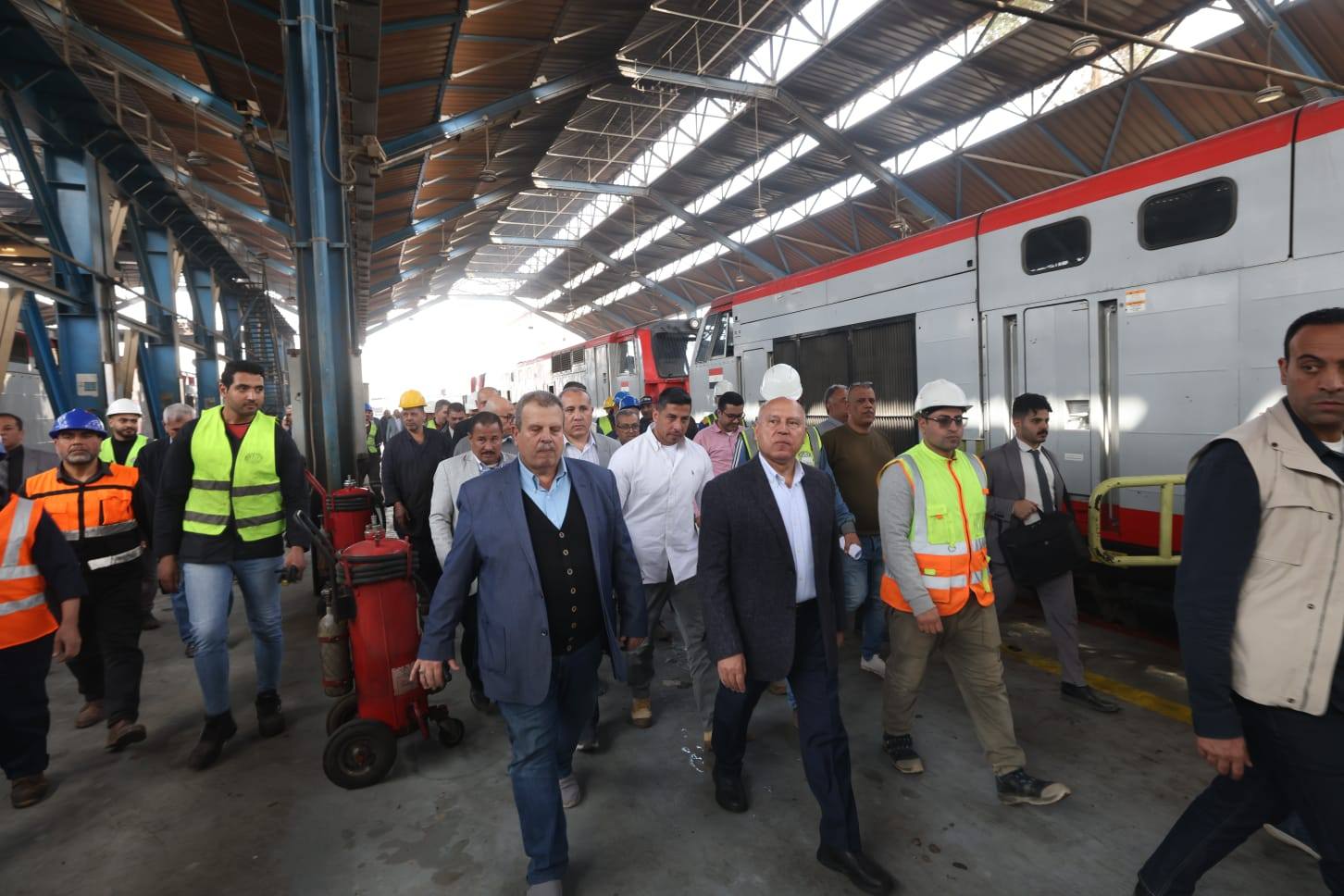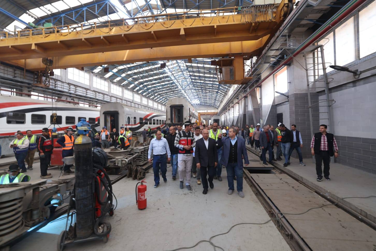 في إطار تنفيذ توجيهات الرئيس عبد الفتاح السيسي الرامية إلى التطوير المستمر لمنظومة السكك الحديدية وتقديم أعلى مستويات الخدمة لجمهور الركاب، أجرى الفريق مهندس كامل الوزير وزير النقل، يرافقه المهندس وجدي رضوان نائب الوزير للسكك الحديدية والجر الكهربائي، والمهندس محمد عامر رئيس هيئة السكك الحديدية، جولة تفقدية موسعة في عدد من ورش الصيانة الرئيسية لمتابعة أعمال الصيانة والتجهيز اليومي للوحدات المتحركة من الجرارات وعربات الركاب بمختلف أنواعها.