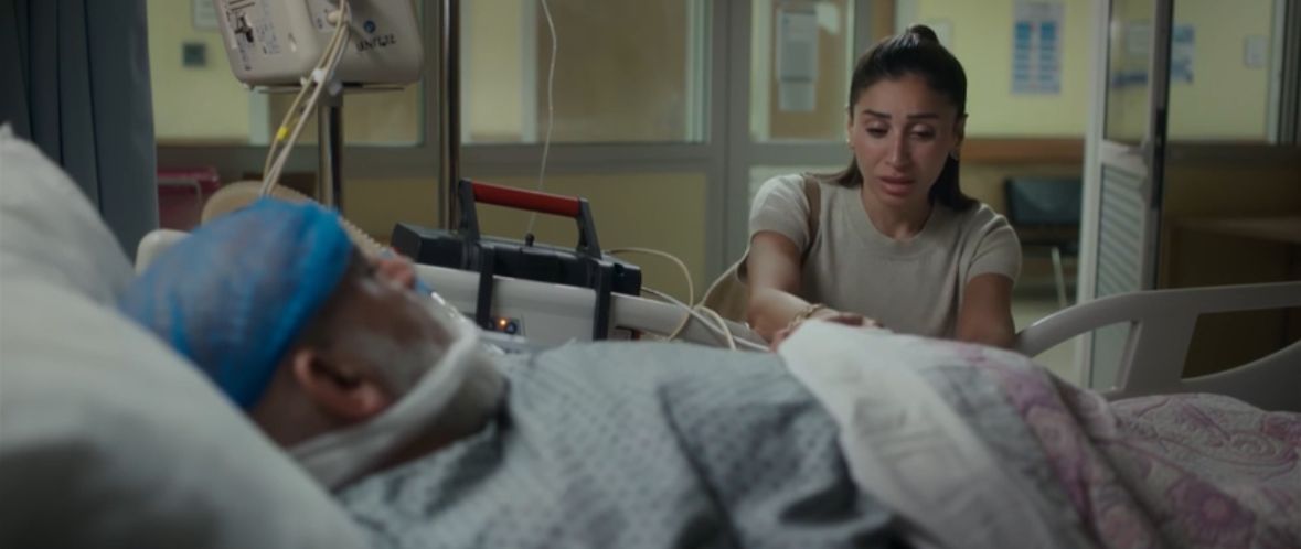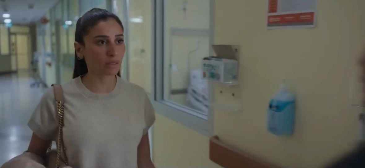 وتذهب دينا الشربيني لزيارة والدها في المستشفي وتدخل غرفته للاطمئنان عليه، وتتذكر لحظة طرده لها من المنزل بسبب رغبتها في التمثيل.