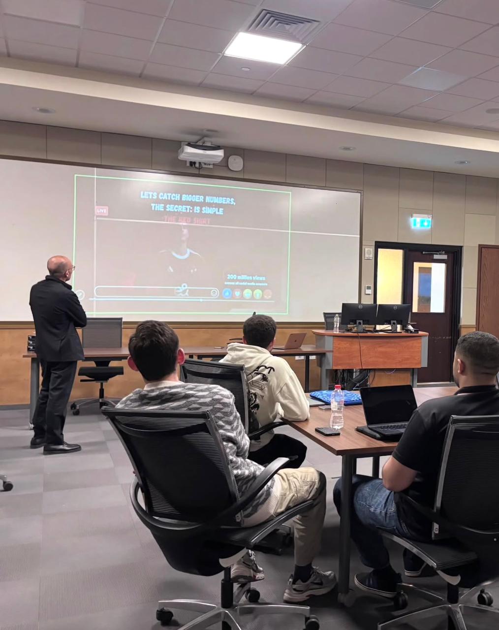 وخلال ورشة العمل، قدّم النائب أحمد حسام عوض عرضًا تفاعليًا حول تقاطعات الرياضة مع السياسات العامة والأعمال، مستعرضًا خبراته العملية في حوكمة المؤسسات الرياضية، والتحول الرقمي في صناعة الرياضة، وبناء الشراكات الدولية، وأثر ذلك على تطوير العلامات التجارية للأندية الكبرى وتعظيم قيمتها التجارية عالميًا. كما ناقش مع الطلاب نماذج واقعية لتوسيع قاعدة الجماهير دوليًا، وأهمية الابتكار في استراتيجيات المحتوى والتسويق الرقمي في صناعة كرة القدم الحديثة.