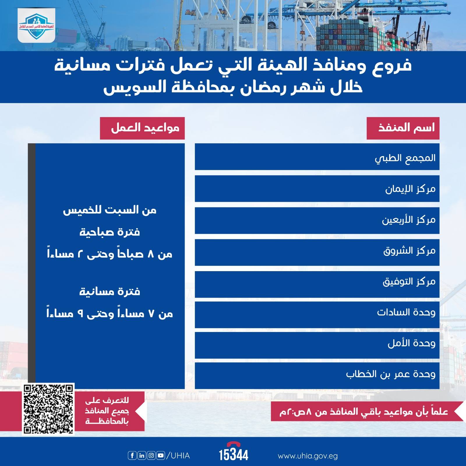 وفي هذا السياق، صرّحت الأستاذة مي فريد، المدير التنفيذي للهيئة، بأن المواعيد الجديدة تأتي استجابة لاحتياجات المستفيدين، بما يضمن سهولة حصولهم على الخدمات الصحية دون عوائق خلال شهر رمضان.