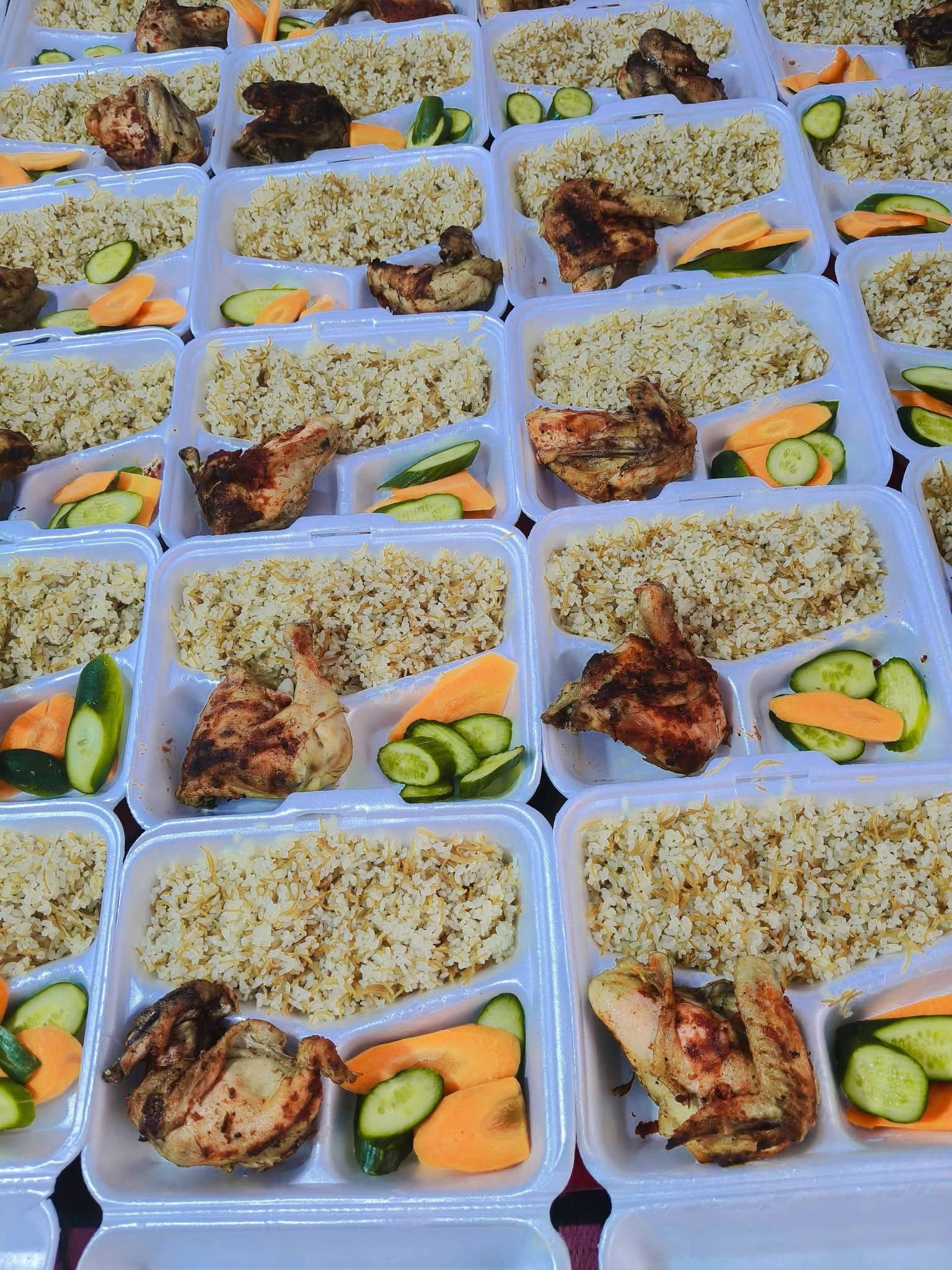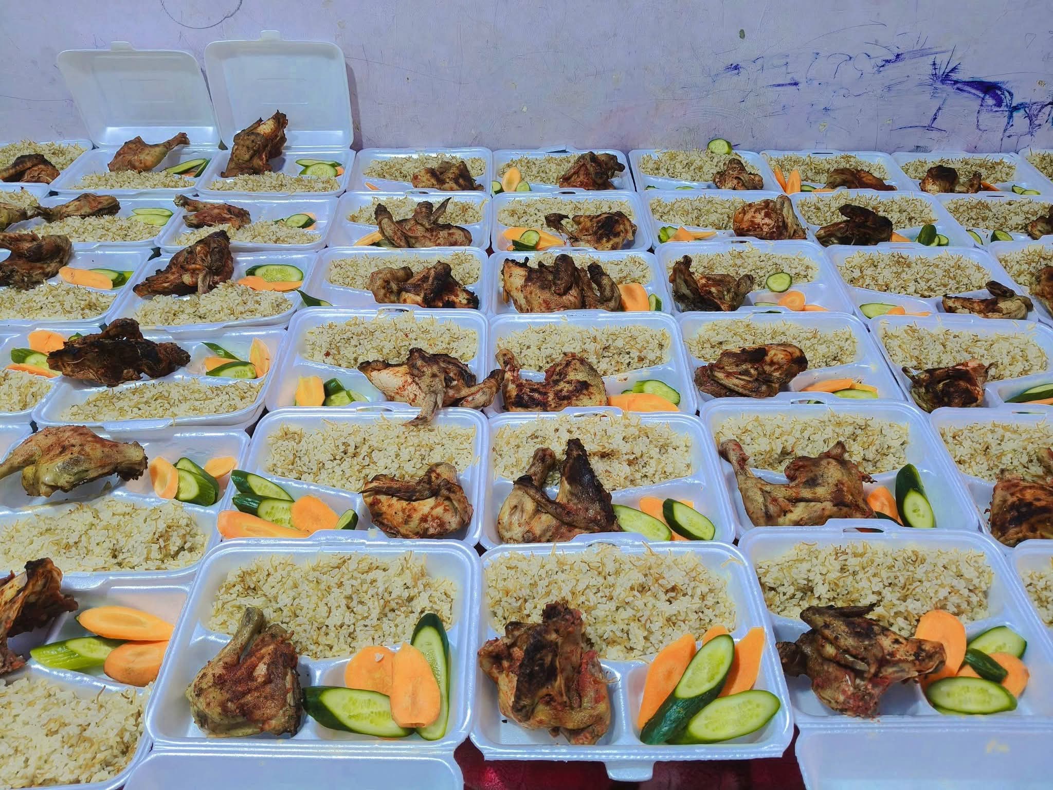 تضمنت الوجبات مكونات غذائية متكاملة شملت (الأرز، اللوبيا، والدجاج)، تم تحضيرها بعناية لضمان وصولها طازجة وبجودة عالية إلى المستحقين.