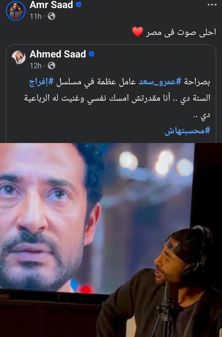 بعد إشادته به في إفراج .. عمرو سعد لـ شقيقه: أحلى صوت في مصر