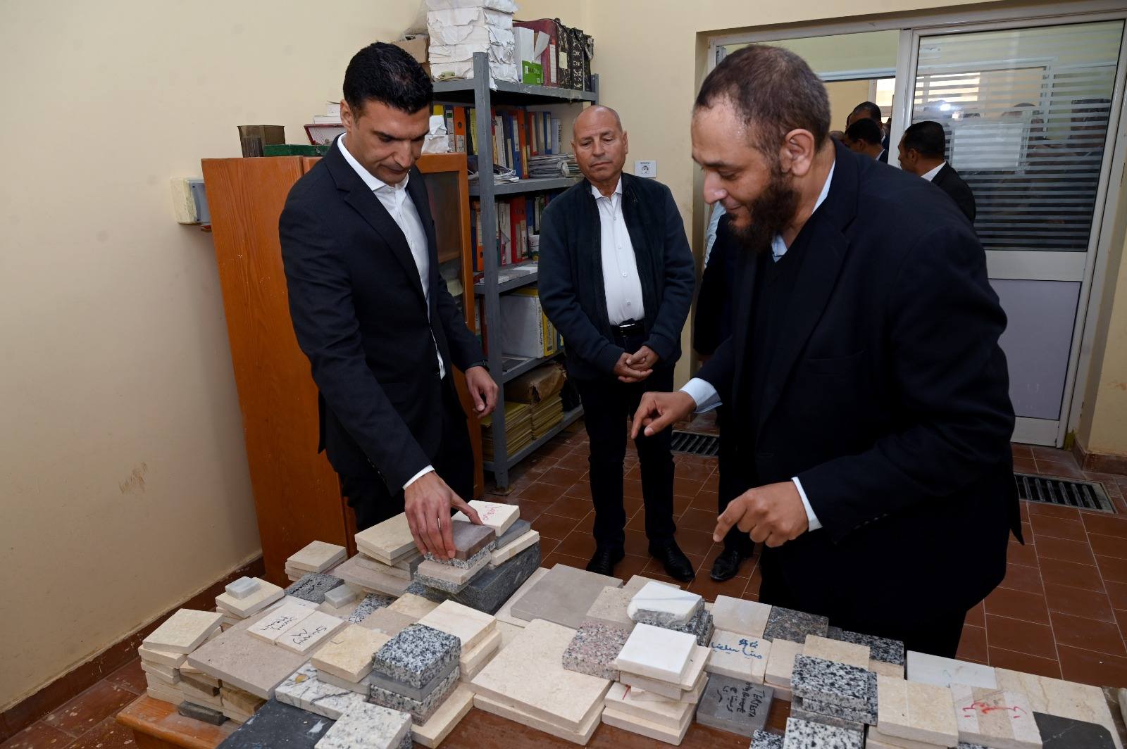 كما تفقد الوزير مركز تكنولوجيا الصناعات التعدينية والرخام التابع لوزارة الصناعة بمنطقة شق الثعبان واطلع على أقسام المركز التي تشمل قسم البحوث والتطوير، وقسم تقييم المحاجر والمناجم، وقسم الصناعات التعدينية، وقسم الرخام والجرانيت، والمعمل، مؤكداً أهمية دور المركز في تعزيز القدرة التنافسية للمعادن الصناعية والأحجار والمحاجر والمناجم في ضوء المعايير الدولية للجودة وأفضل الممارسات.