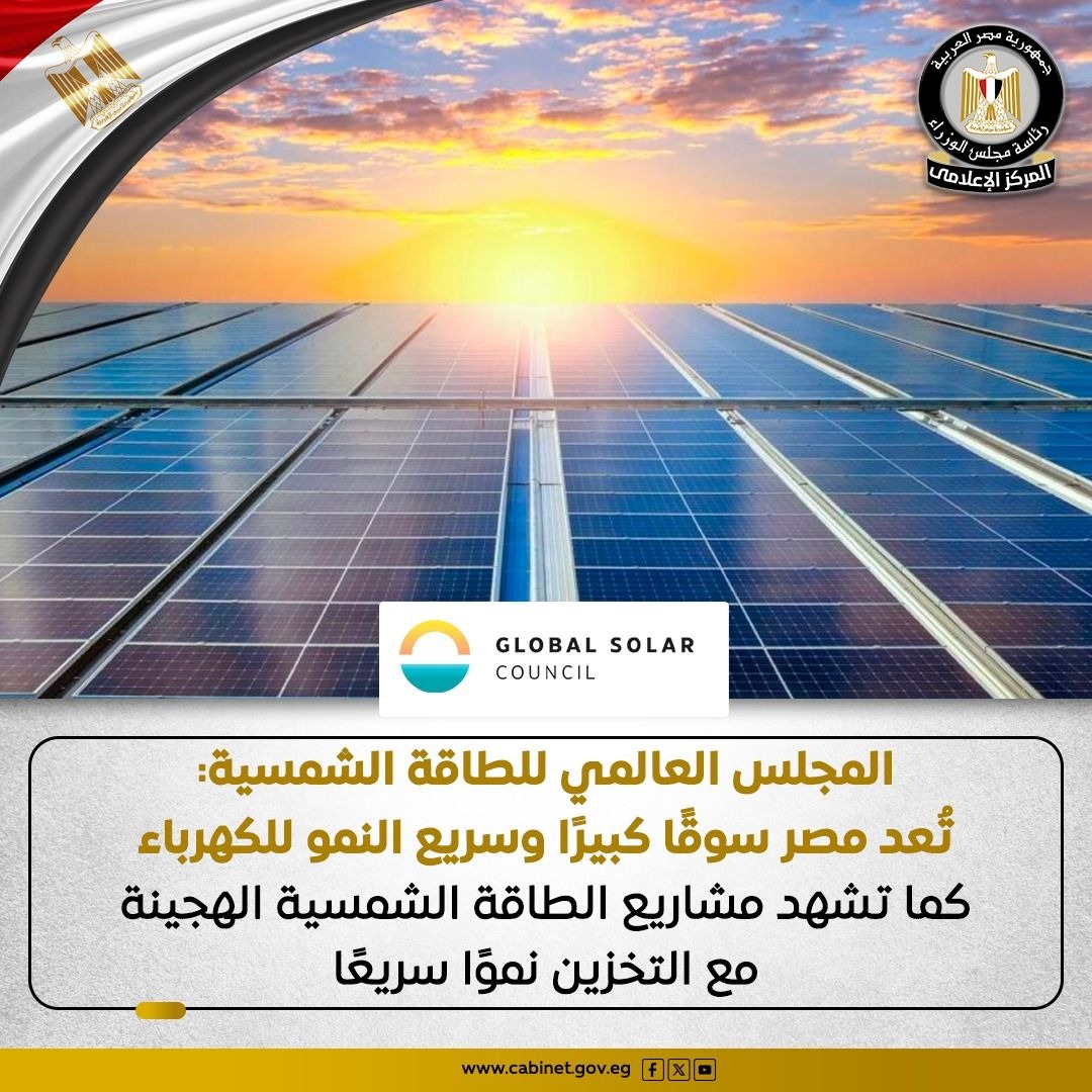 أشاد المجلس العالمي للطاقة الشمسية في تقريره الصادر في فبراير 2026 بجهود الدولة المصرية لتنويع مصادر الإمداد ودعم صادرات الكهرباء، مؤكدًا التزام مصر بمستقبل طاقة مستدامة.