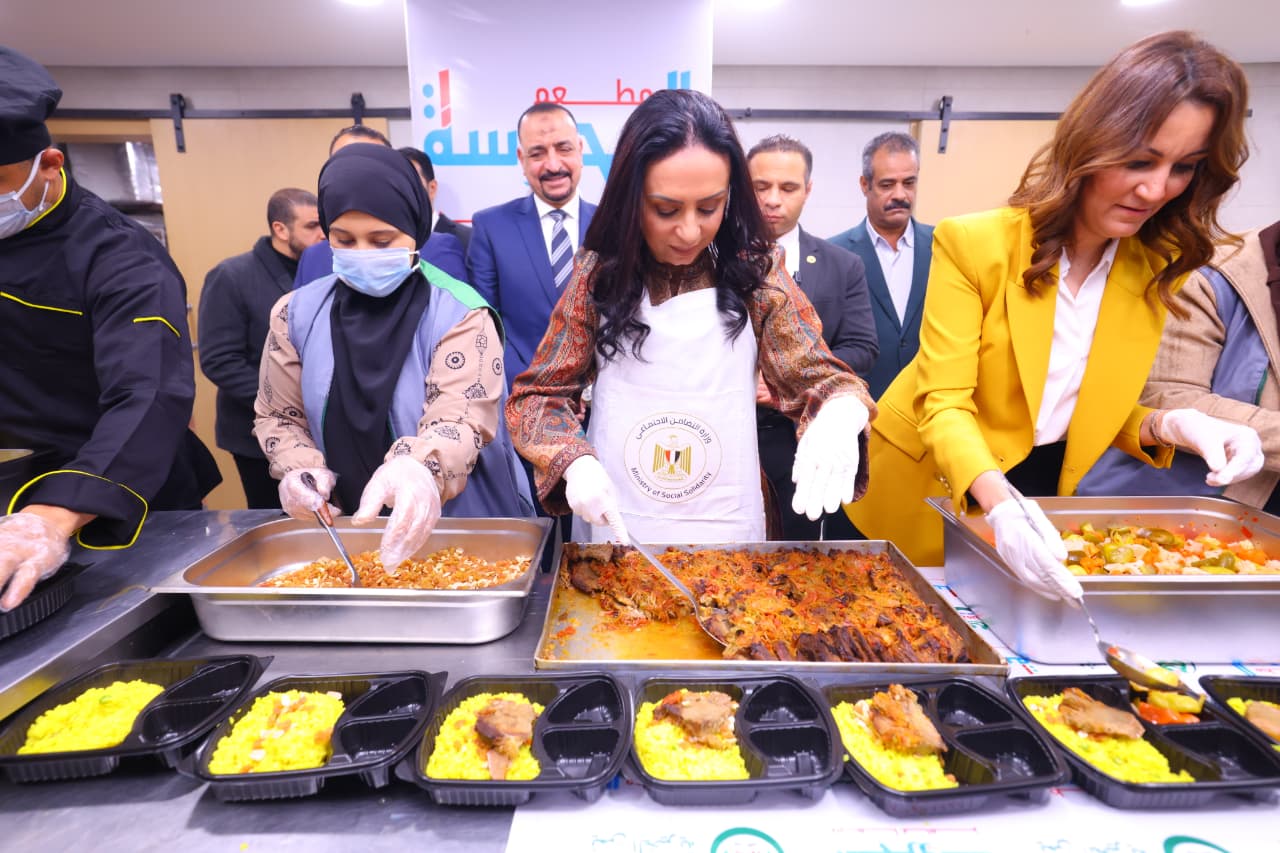 وزيرة التضامن تشارك فى إعداد إطعام المحروسة بالوراق وتقديم 2000 وجبة يوميا