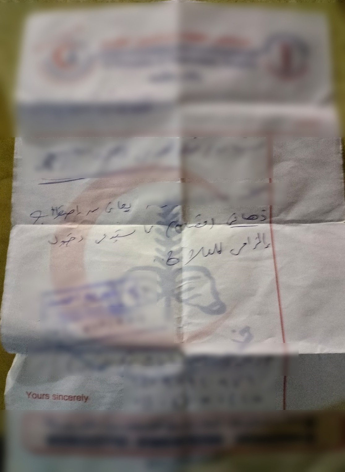 كما أظهرت التحريات أن المتهم توجه إلى أحد محال كماليات السيارات بالمنطقة وطلب طباعة الملصق المشار إليه، فقامت ابنة مالك المحل بطباعة نسختين وتسليمهما له خوفًا منه، نظرًا لكونه معروفًا بعدم اتزانه النفسي في محيط سكنه.
