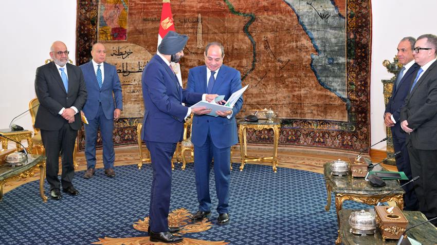 استقبل الرئيس عبد الفتاح السيسي، اليوم، السيد أجاي بانجا، رئيس مجموعة البنك الدولي، وذلك بحضور الدكتور بدر عبد العاطي وزير الخارجية والتعاون الدولي والمصريين بالخارج، والدكتور أحمد رستم وزير التخطيط والتنمية الاقتصادية، و أثيوبيس تافارا نائب رئيس مؤسسة التمويل الدولية، و أوسمان ديون نائب رئيس البنك الدولي، و تريفور كينكايد مستشار رئيس مجموعة البنك الدولي، و عبد العزيز الملا المدير التنفيذي لمجموعة الدول العربية في البنك الدولي، والسفير هشام سيف الدين المدير التنفيذي المناوب لدى مجموعة البنك الدولي.