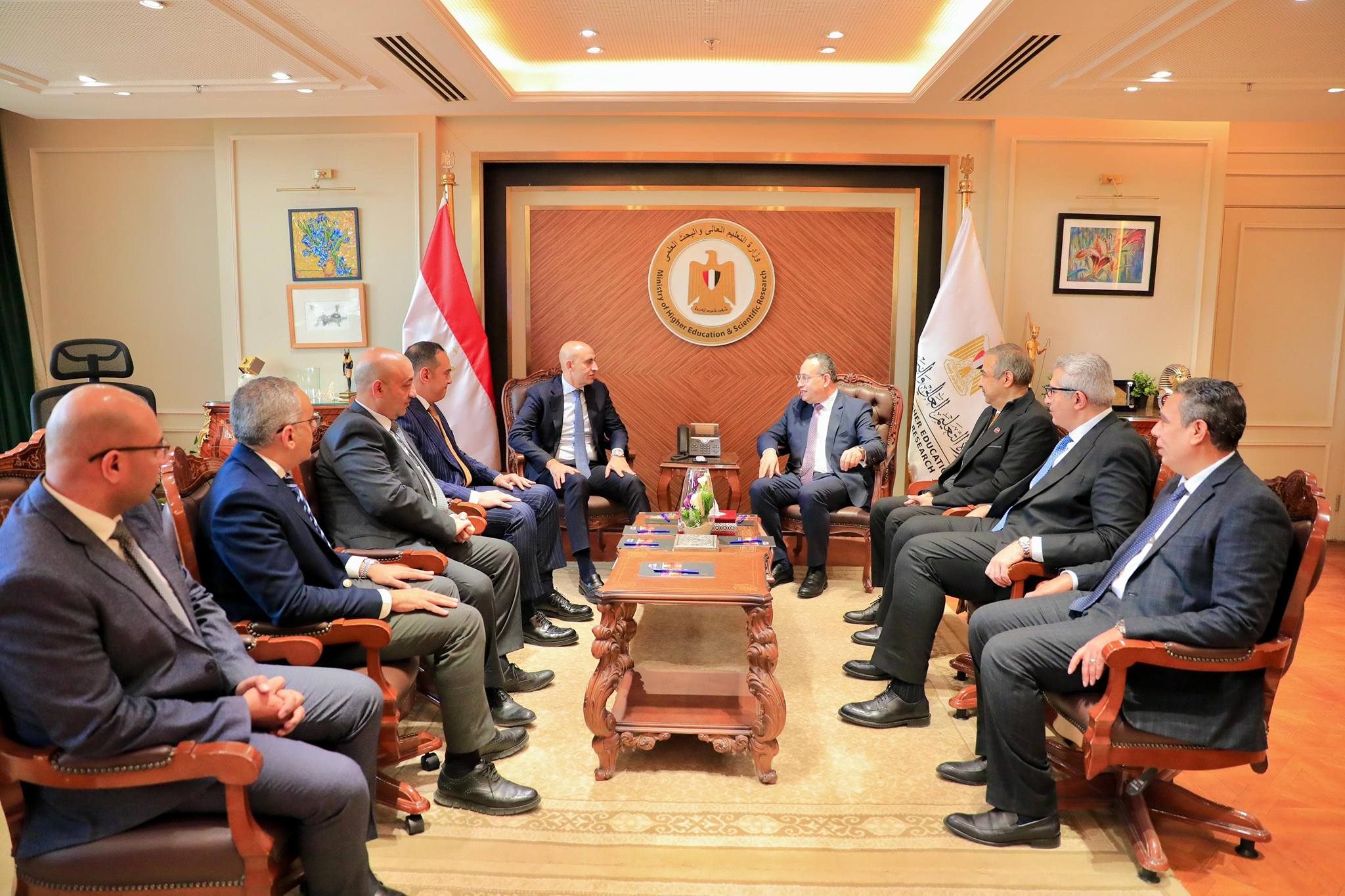 وحضر الاجتماع من جانب وزارة التعليم العالي الدكتور حسام عثمان نائب الوزير لشئون الابتكار والذكاء الاصطناعي والبحث العلمي، والدكتور مصطفى رفعت أمين المجلس الأعلى للجامعات، والدكتور عادل عبدالغفار المستشار الإعلامي والمتحدث الرسمي للوزارة.