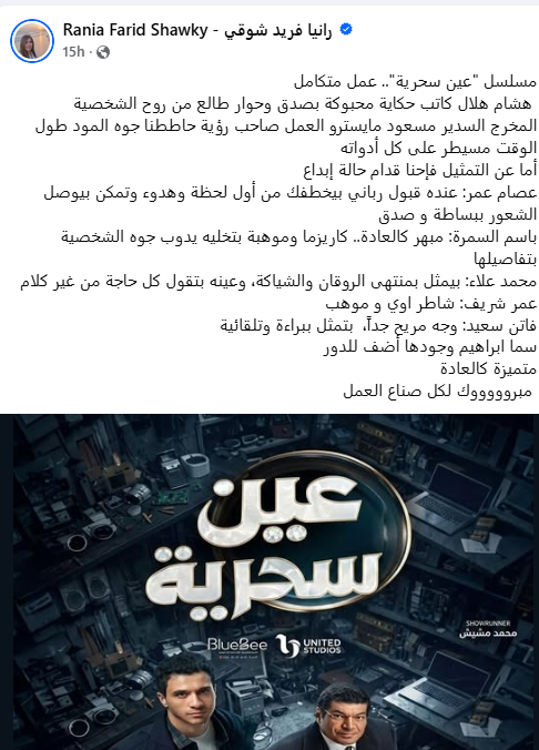 رانيا فريد شوقي تُشيد بـ عين سحرية: عمل متكامل