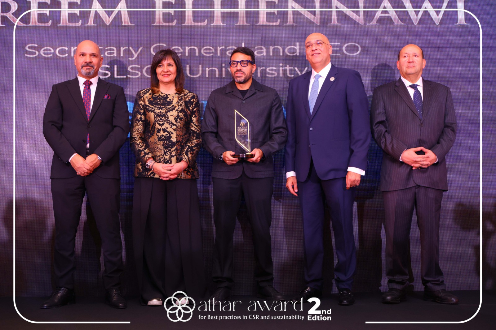 جاء ذلك خلال كلمته بإحتفالية النسخة النسخة الثانية من Athar Award for Best Practices in Sustainability & CSR ،"جائزة اثر "والتي تاتى هذا العام بشراكة استراتيجية مع التحالف الوطنى للعمل الاهلى التنموى بمصر لدعم مفاهيم الاستدامة و تعزيز الشراكات الفعالة التى تعزز الاثر عن طريق حوكمة الاداء لكافة الممارسات التى تسعى لتحقيق مستهدفات خطة مصر 2030 وأهداف التنمية المستدامة للأمم المتحدة .