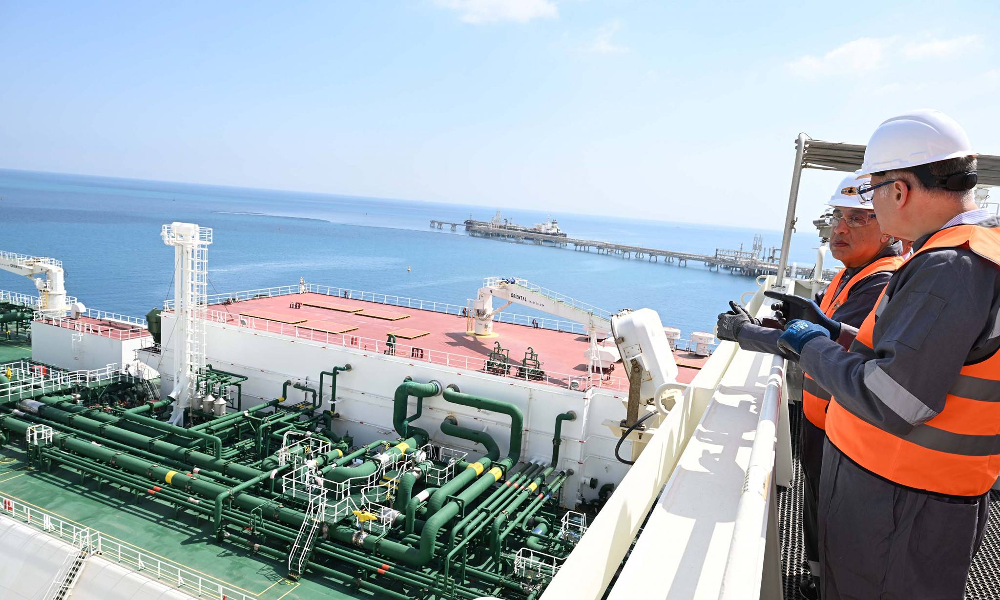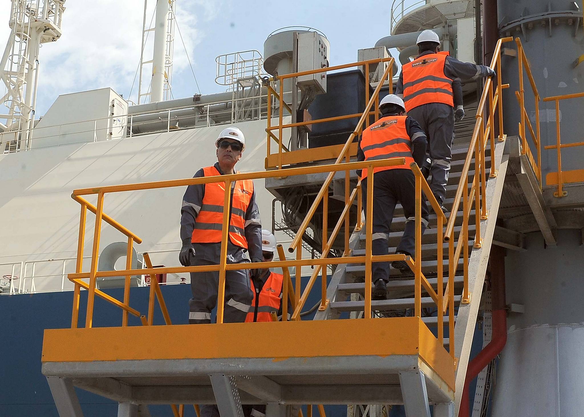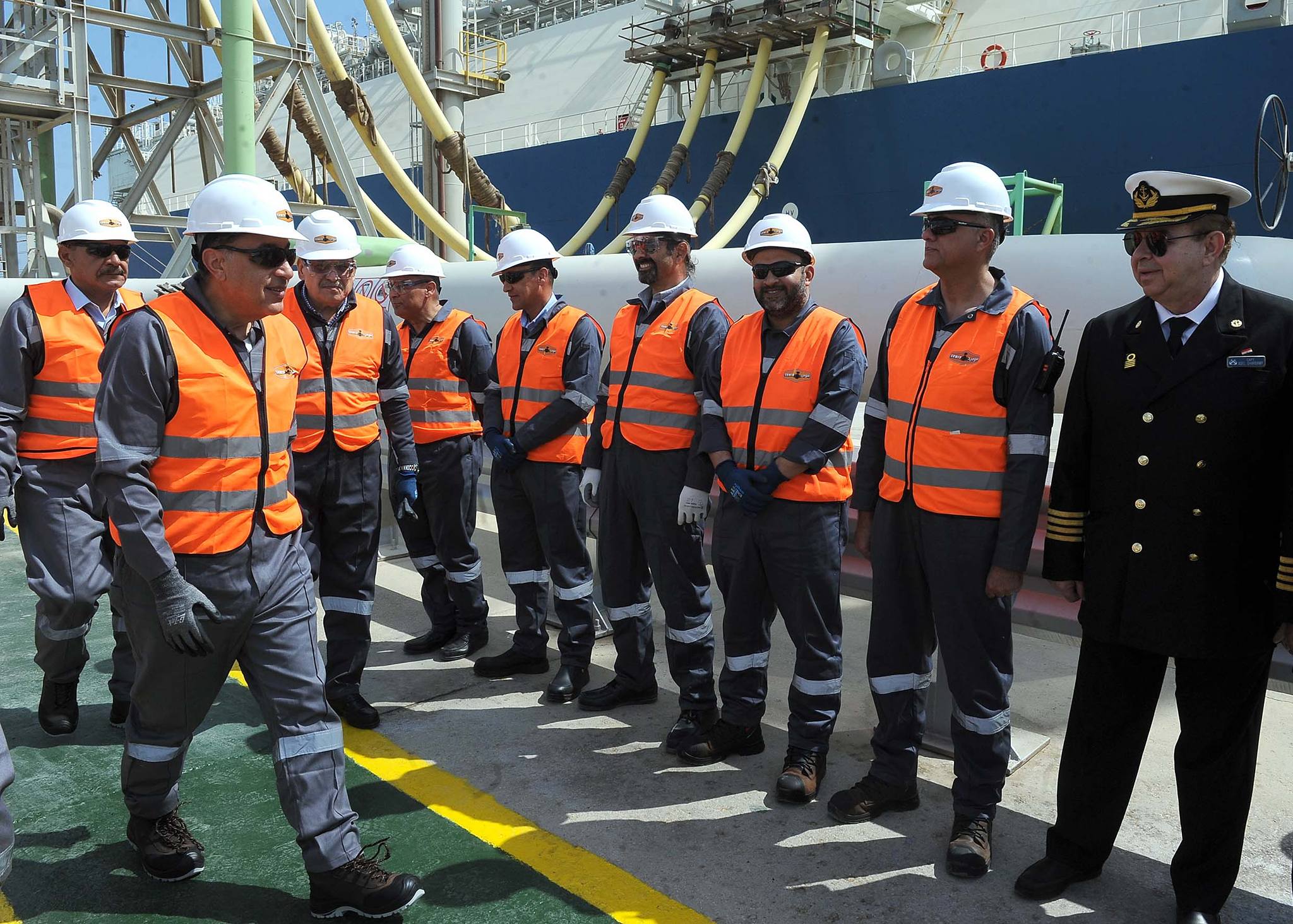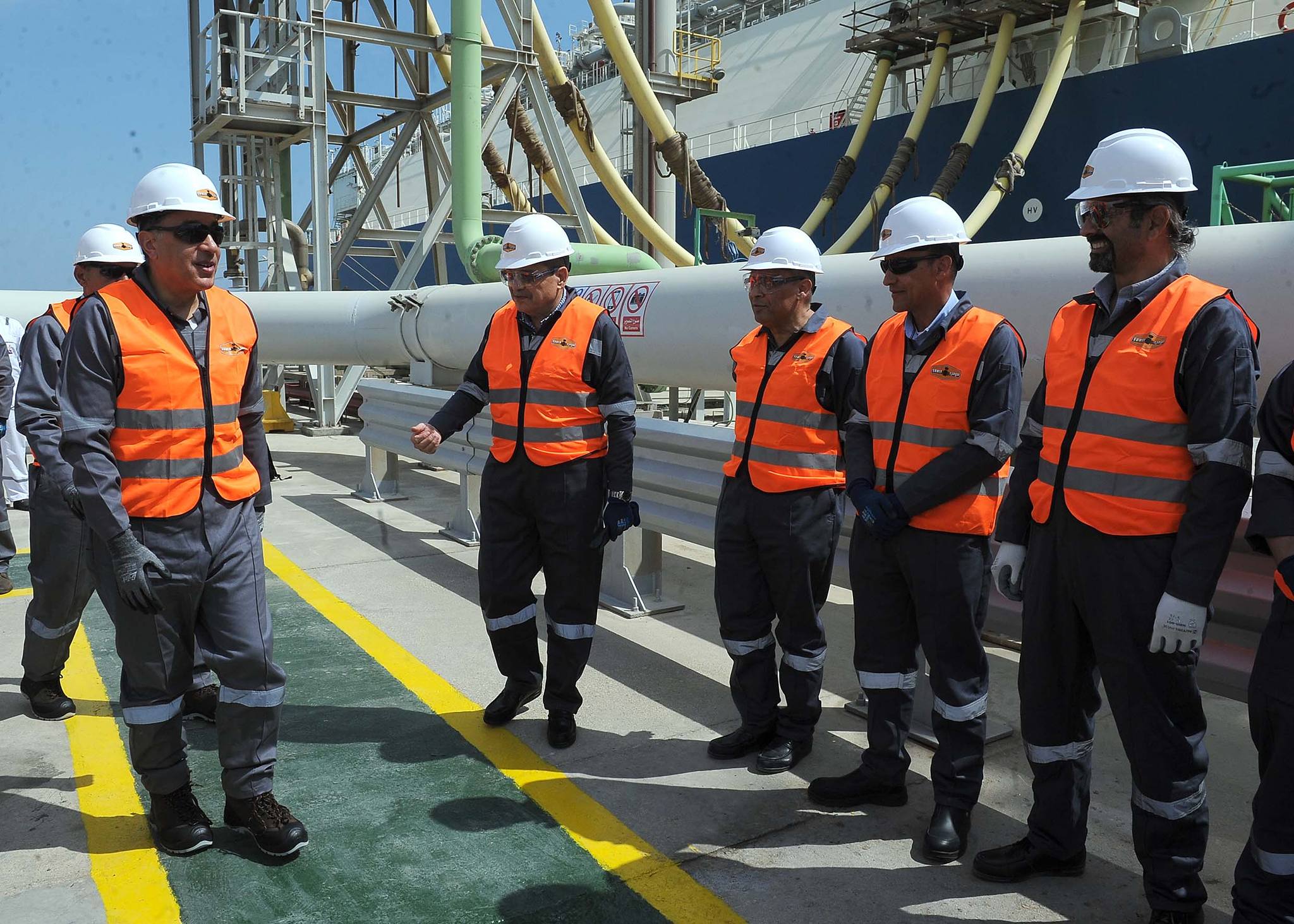 رئيس الوزراء يصعد إلى وحدة التغويز لمتابعة شحنة الغاز الطبيعي المسال